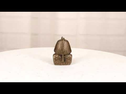 • Relive one of the most celebrated and powerful era of Egyptian Dynasty with this mask of King Tut figurine. Adorned in his golden mask, King Tut rests in his casket tomb under the safety of a pyramid. This figurine is beautifully sculpted and hand painted by experts to showcase this ancient king.