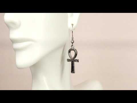 • These exotic Egyptian Ankh earrings each measures 1"High and 0.5" Wide. • These exotic Egyptian Ankh earrings are made of SS316 Stainless Steel metal. • These dangle style earrings come with clear rubber stoppers/backs.