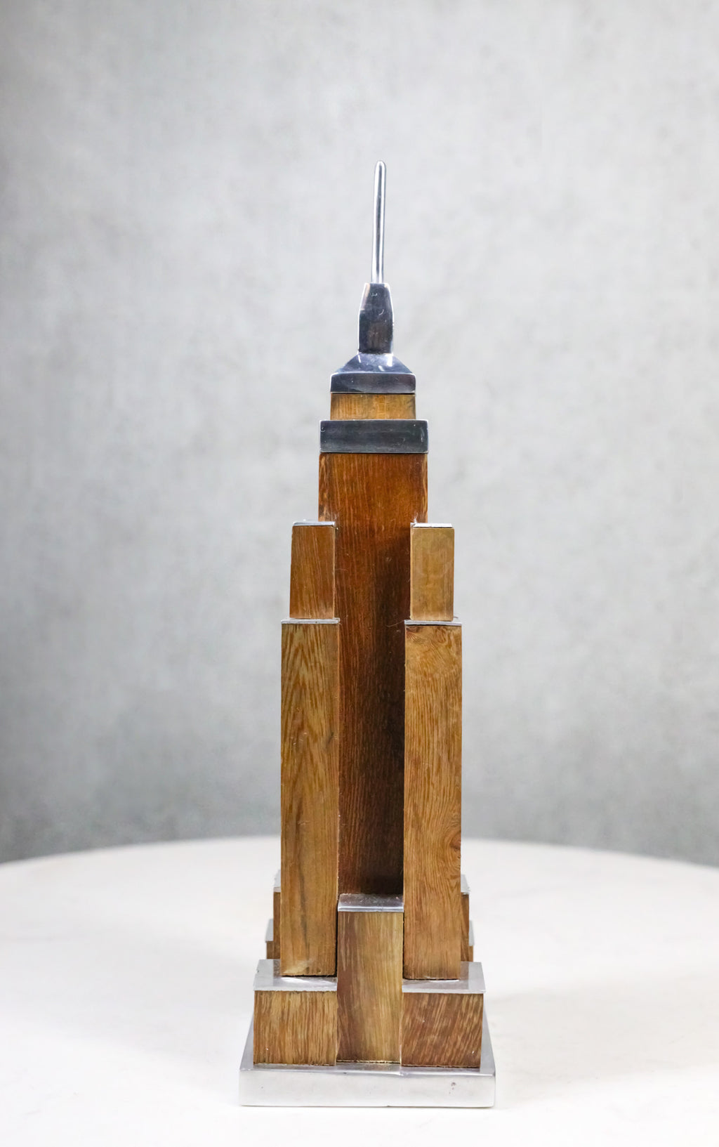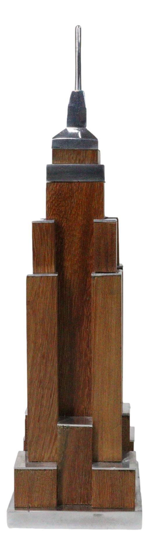 • This New York Empire State Building Art Deco Sculpture measures 8.25"High, 2.25"Long and 2.25" Deep approximately. It weighs about 9 ounces. • This New York Empire State Building Art Deco Sculpture is made of designer aluminum and mahogany wood. It is then hand painted and polished individually. • Celebrate one of America's most iconic skylines with this New York Monument Empire State Building Art Deco Figurine. Expertly crafted with sleek aluminum detailing and a rich mahogany wood structure, this striking replica captures the timeless elegance and architectural grandeur of the legendary skyscraper. Inspired by classic Art Deco design, it showcases clean lines and refined structure that make it a sophisticated accent for offices, libraries, or modern living spaces. • Props in photos are not included with the sculpture.