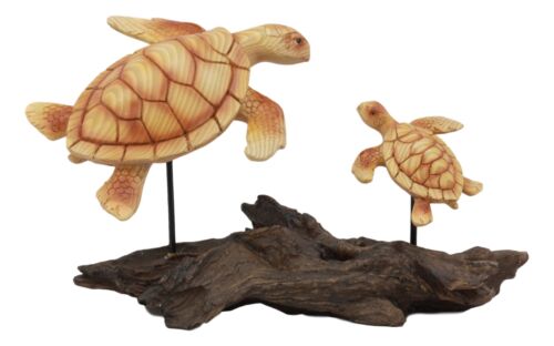 Ebros Under The Sea Mother and Baby Sea Turtle Decor Statue 10" Long Faux Wood Resin Marine Life Turtle Family Scene Figurine