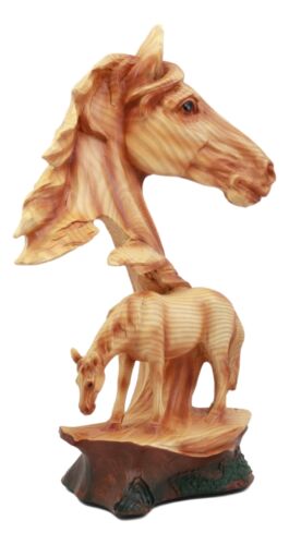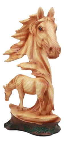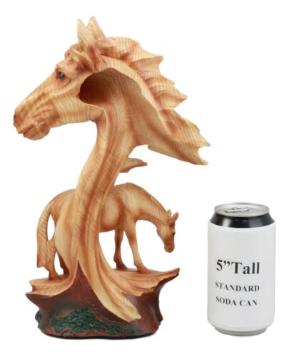 • This Faux Wood Horse Bust Sculpture measures 12.5" tall, 8.5" long and 5" deep approximately. • This Faux Wood Horse Bust Sculpture is made of high quality designer resin, individually hand painted and polished in faux wood grain finish. Color tone may vary from pictures. • The Stallion Bust is sculpted in deep appreciation for the beauty and excellence of the Stallion Horse. The sculpture features the Horse Bust as the main focus and underneath it a full bodied horse grazing on grass. The Horse Head will make an impressive decor for any shelf, desktop, mantle-piece or what have you! • This is an Ebros exclusive collection. Coke can placed next to the statue is not included with the listing. It is meant to provide size perspective of the item.