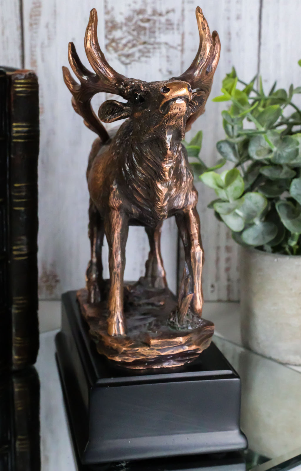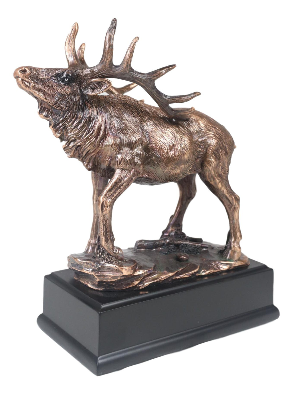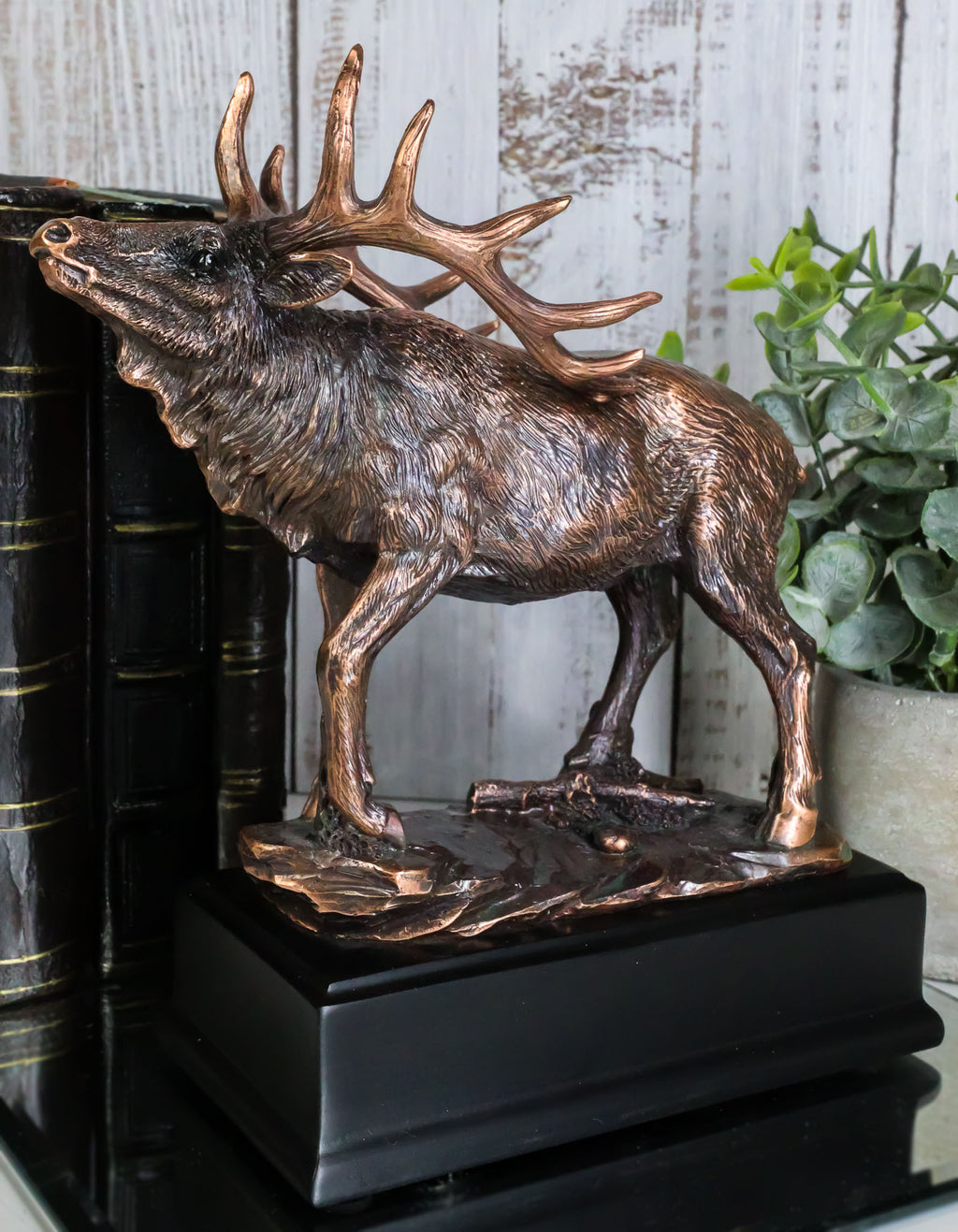Large Wapiti Bull Elk Deer Rustic Bronze Electroplated Finish Statue With Base