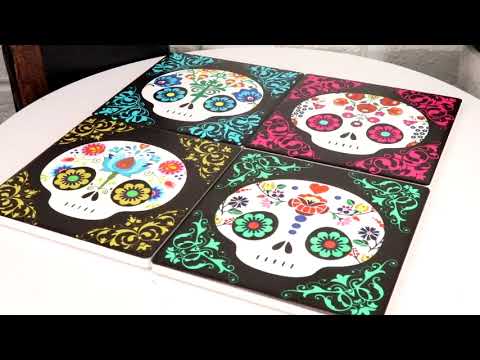 Ebros Calavera Baby Sugar Skulls DOD Ceramic Coaster Set 4 Corked Tiles