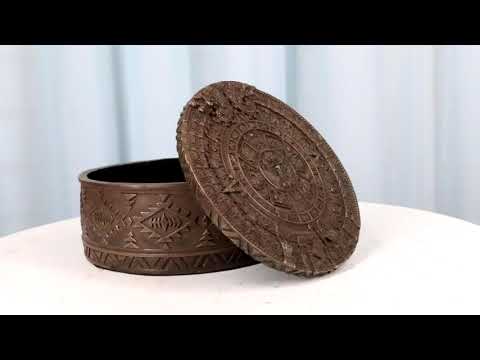 • This Round Aztec Solar Calendar Cryptic Ancient Symbols Box is made of high quality polyresin, hand painted and polished individually. Color tone may vary from pictures.