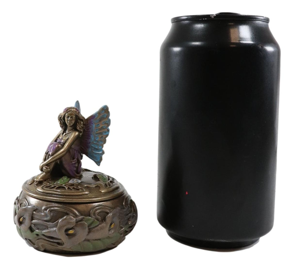 • This Beautiful Calla Lily Fairy Decorative Box measures approximately 3" high and 2.75"in diameter. She weighs about 5 ounces.