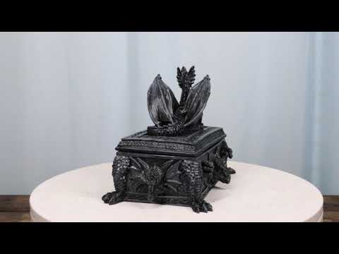 • This Celtic Knotwork Alchemy Dragon Jewelry Box measures approximately 5" tall, 7" long and 4.75" wide.