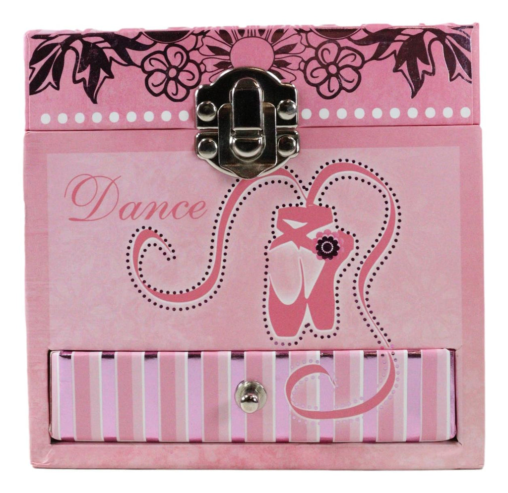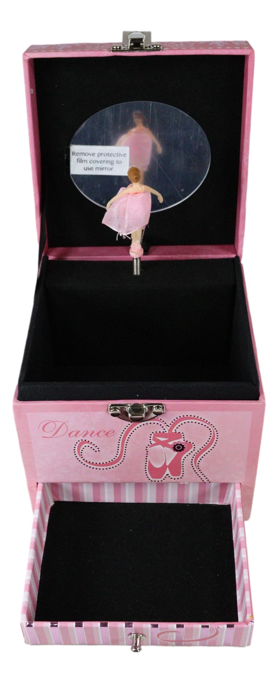 • This Ballerina Musical Box measures 4.25"H X 4.75"LX 4.5"W and when opened, the box measures 8" approximately. It weighs about 13 ounces. • This Ballerina Musical Box is made of high quality Hard Composite Wood and Paper. • This adorable box opens up to a spinning ballerina dancing to the tune of "Swan Lake". It also features a mirror on the inside of the lid and an open storage area at the bottom. Top of the Box reads "Dance To The Music Playing In Your Heart". • This ballerina music box is a beautiful and heartfelt meaningful gift for a special girl who loves Ballet. Whether it be for a Ballet Recital, birthday present or what have you, this musical box is a timeless gift to show your expression of love. • Jewelry and props in photos are not included with the item.