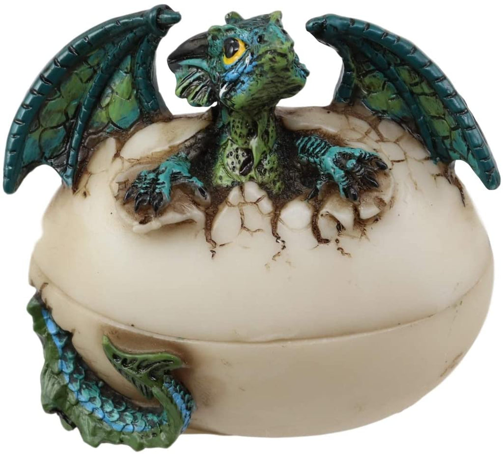 • This Green Dragon Hatchling Egg Box figurine is made of high quality designer resin, individually handpainted and polished. Because each piece is partially hand crafted, color tone may vary from pictures.