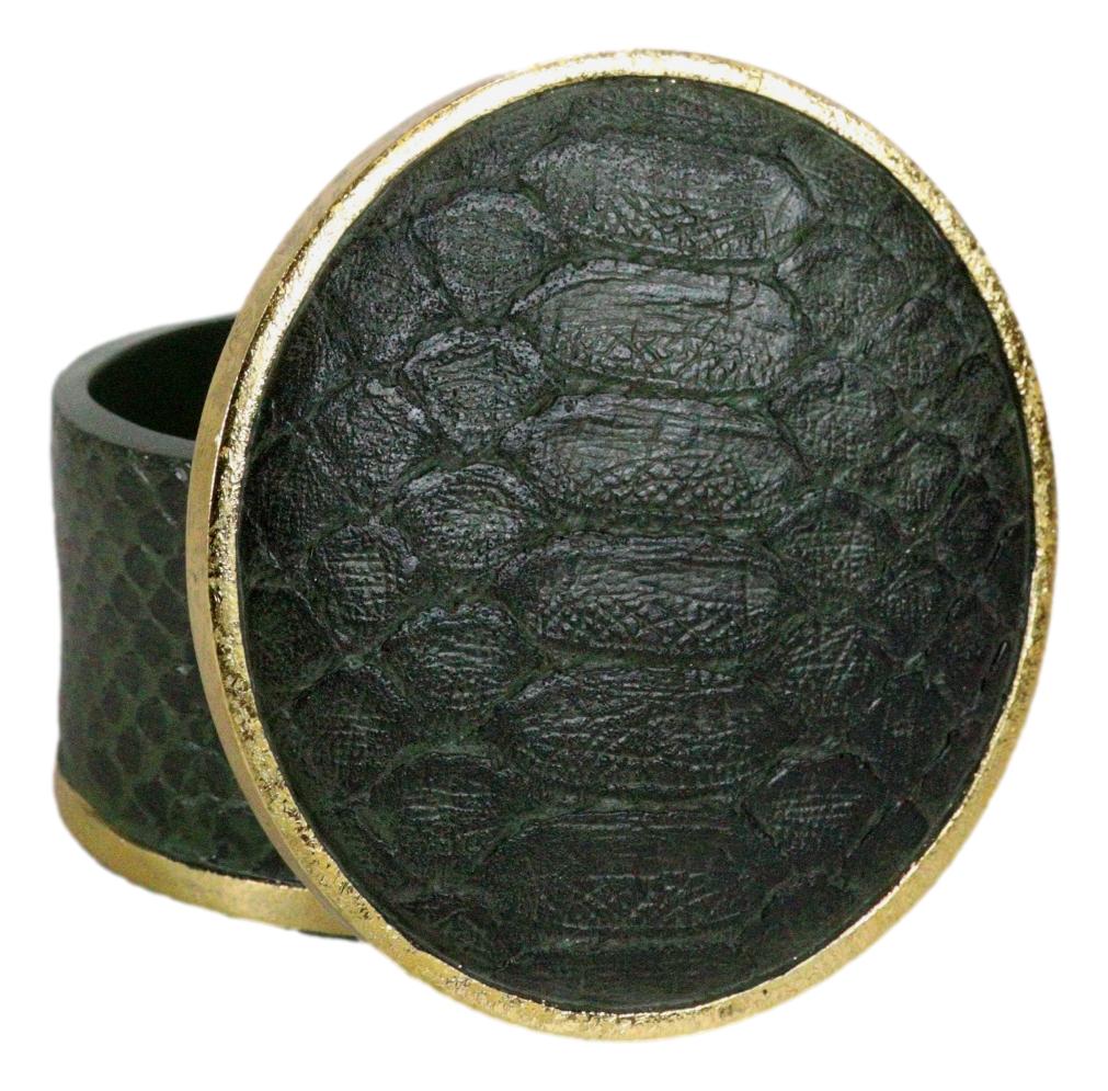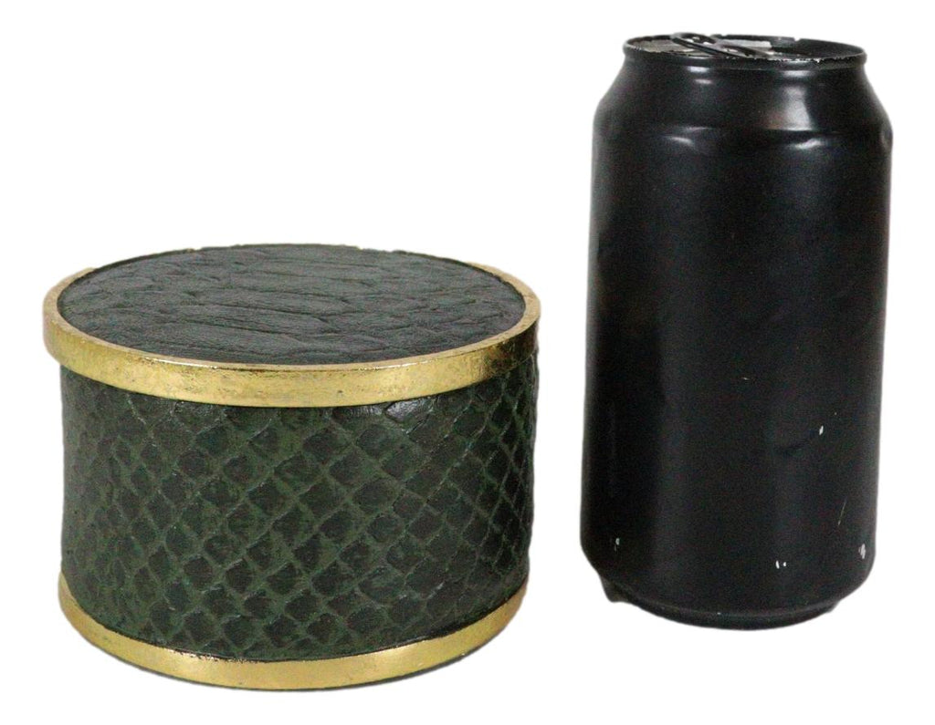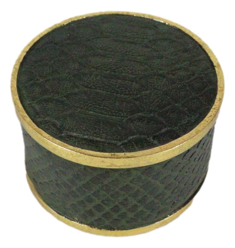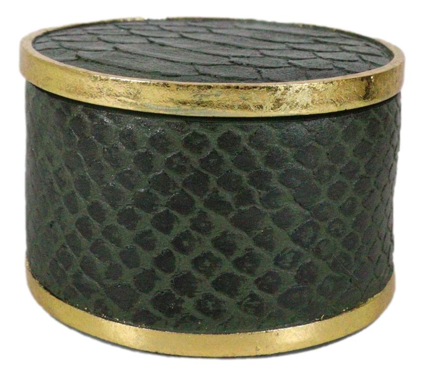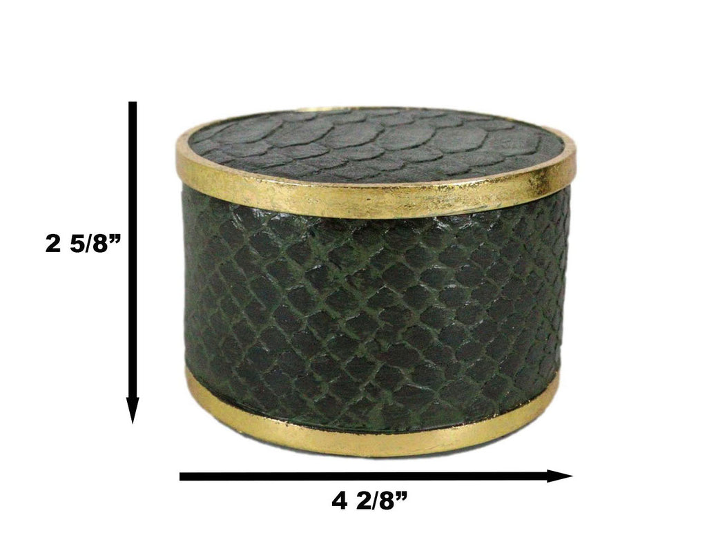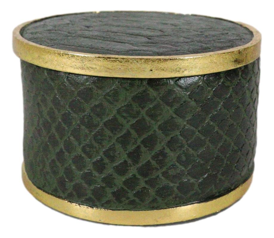Faux Crocodile Pattern Green Print With Gold Trim Round Decorative Jewelry Box