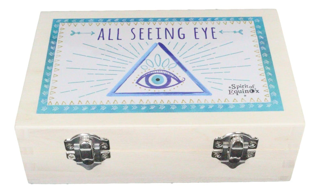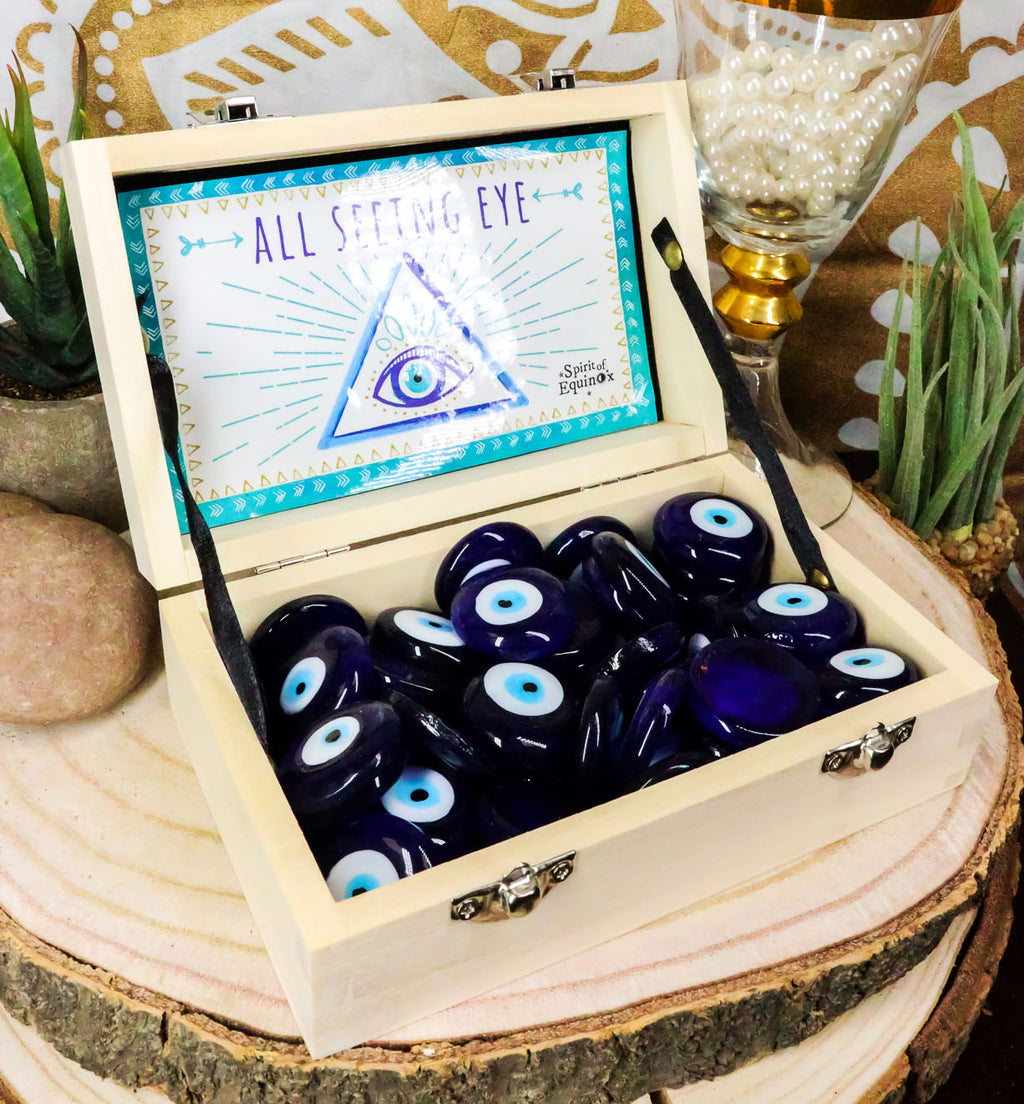 Ebros Illuminati Eye Of Providence Wooden Box W/ 48 Glass All Seeing Eyes