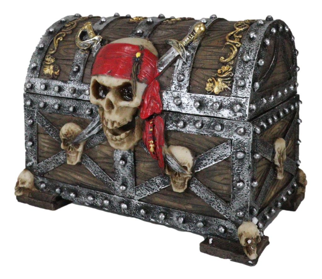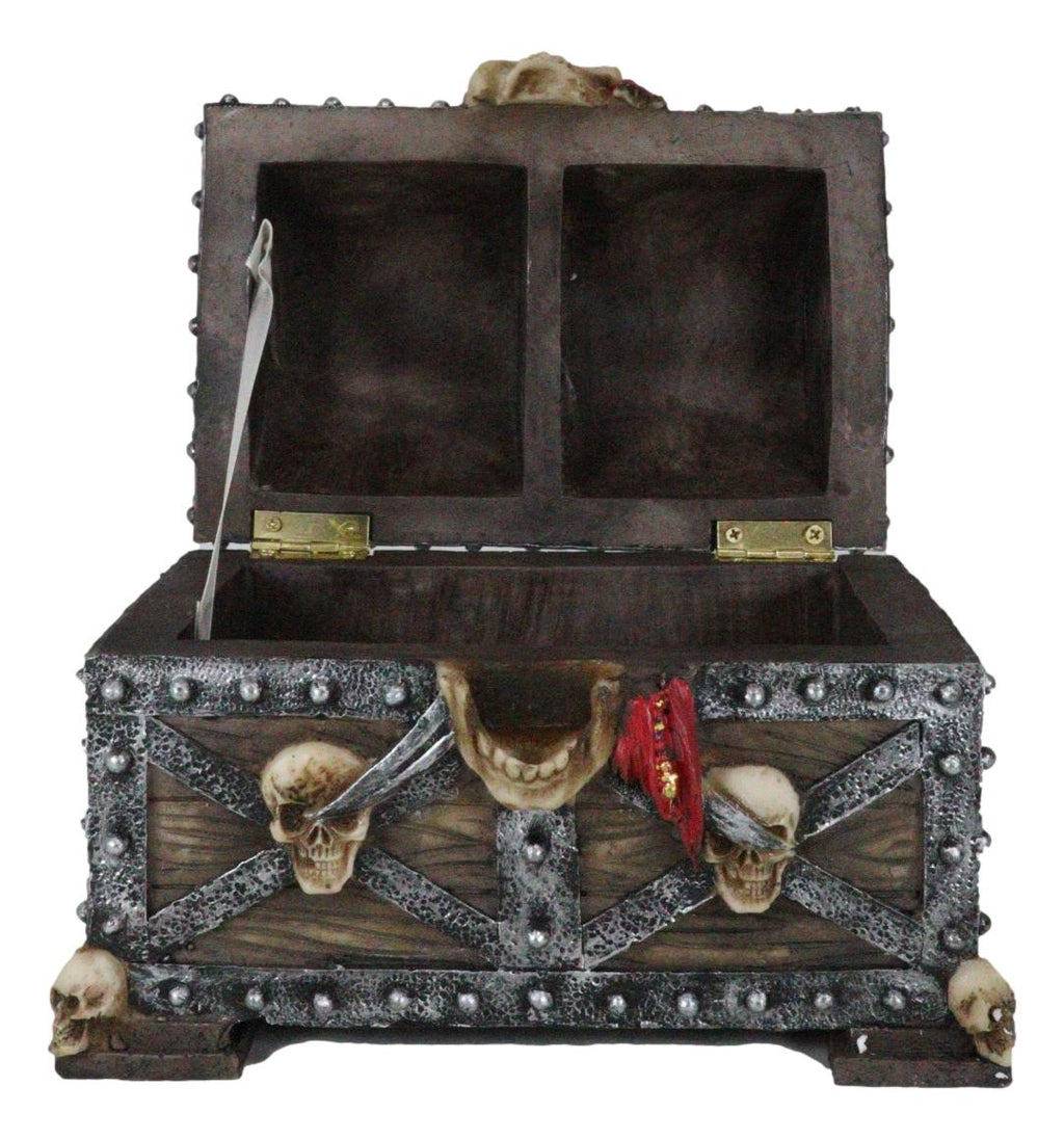 Large Caribbean Pirate Marauder Skull With Criss Cross Blades Treasure Chest Box