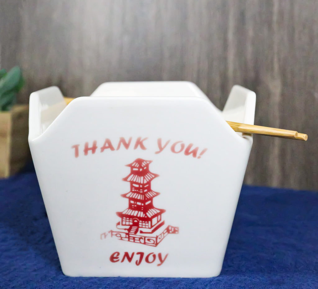 Oriental Buddha Pagoda Asian Takeout To Go Box Serving Bowl With Chopsticks Set
