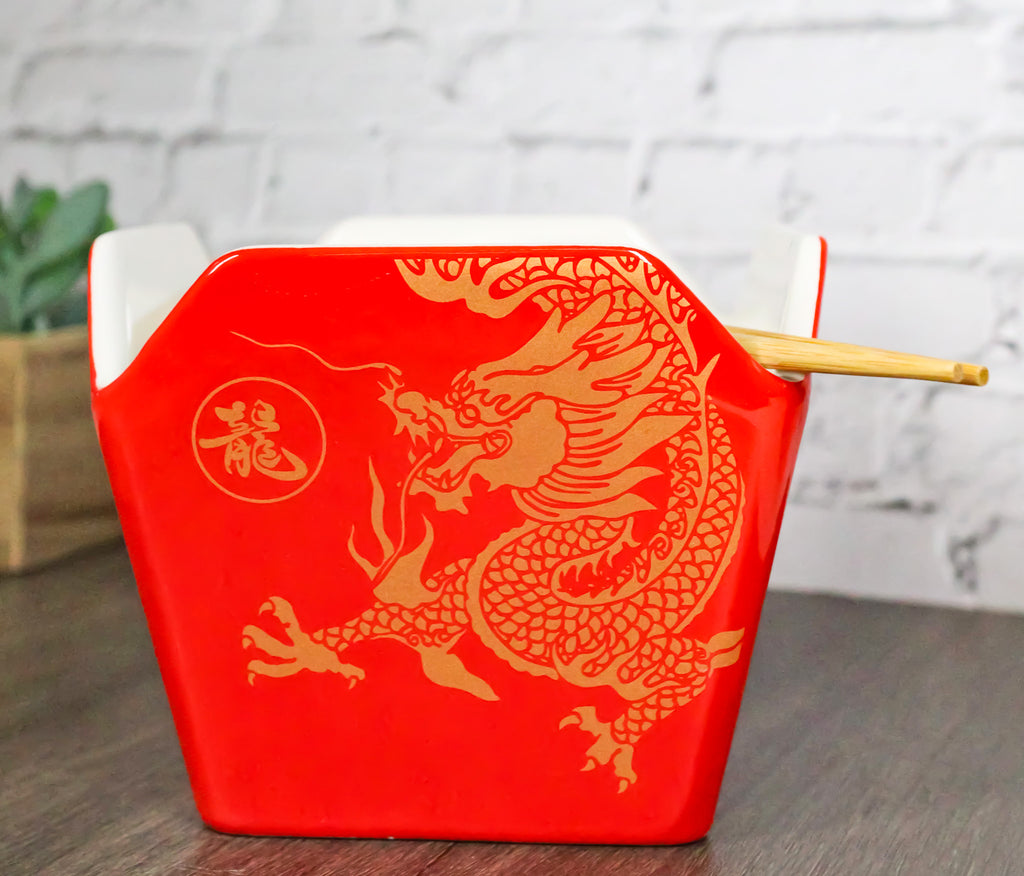 Oriental Longwei Dragon King Takeout To Go Box Serving Bowl With Chopsticks Set