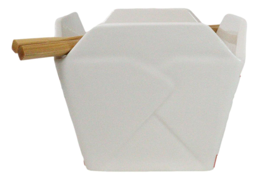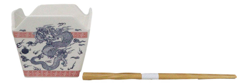 • This Asian Takeout To Go Box Shaped Bowl With Chopsticks Set is made of ceramic porcelain and bamboo. • Measurements: Serving Bowl Diameter 5" and 4" tall. Chopsticks are 9" long. The ceramic bowl is Microwave and Dishwasher Safe. Handwash the wooden chopsticks. The bowl set weighs about 1.5 pounds. Bowl has a 16 FlOz capacity. • This Asian Takeout To Go Box Shaped Bowl comes with a pair of wooden chopsticks. The bowl features a very convenient chopstick rest at every corner of the bowl. The bowl is great not only for Ramen or Donburi but also for soup, cereal, rice or what have you! Perfect gifts for college students, working professionals, housewarming or what have you. They also make beautiful decoration for your kitchen and home.