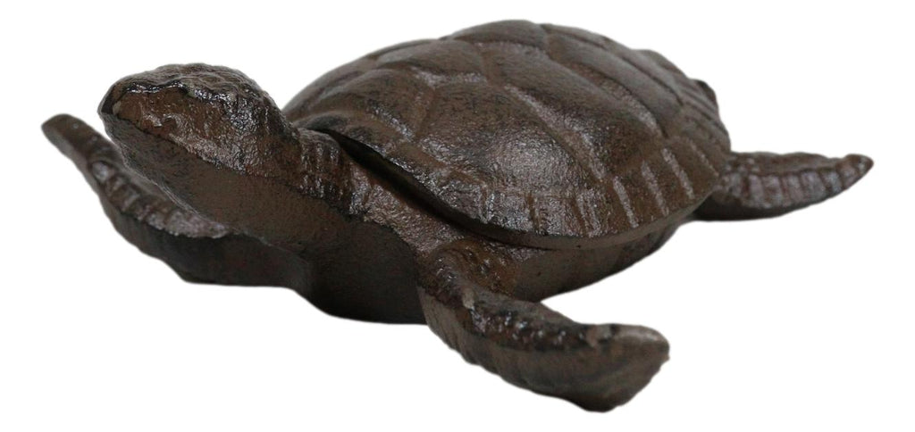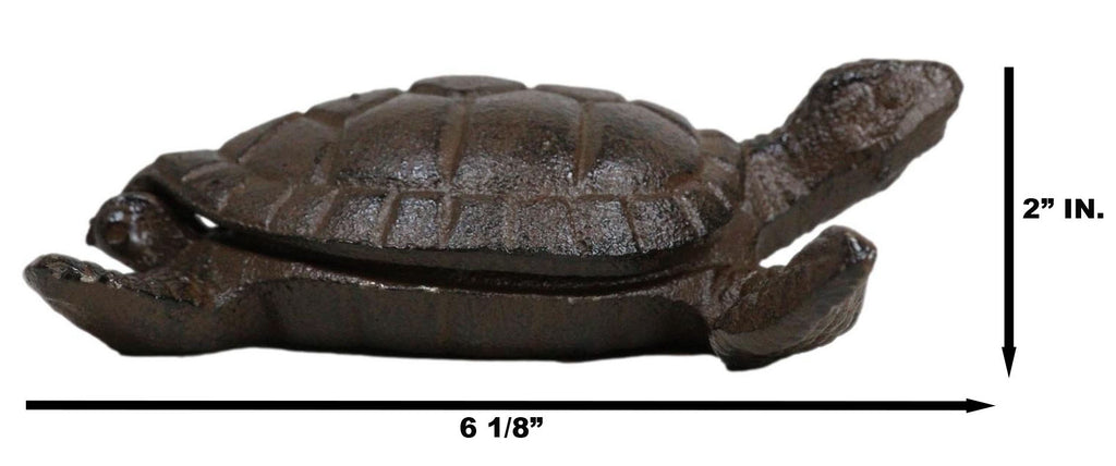 • This Adorable Turtle Box Figurine is made of cast iron, hand painted and polished individually. Being made from high-quality cast iron, it not only exudes durability but also adds a rustic and timeless appeal to your decor.