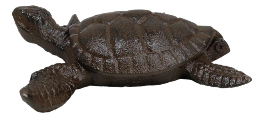 • Introducing the exquisite Cast Iron Sea Turtle Stash Box - a treasure trove of both functionality and artistic nautical charm! Crafted with utmost precision and attention to detail, this enchanting sea turtle design is a true testament to the beauty of nature. Not only does it make for a stunning decorative piece that complements any living space, but it also serves as a versatile small storage solution for your keys, paper clips and other small articles. Simply lift up its shell!