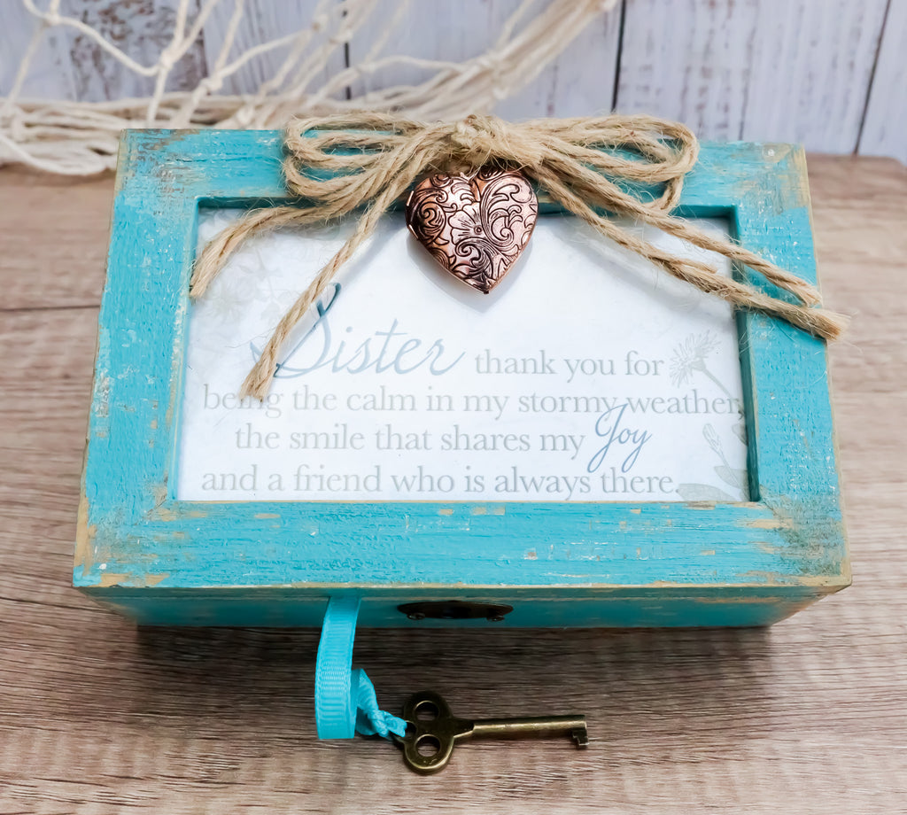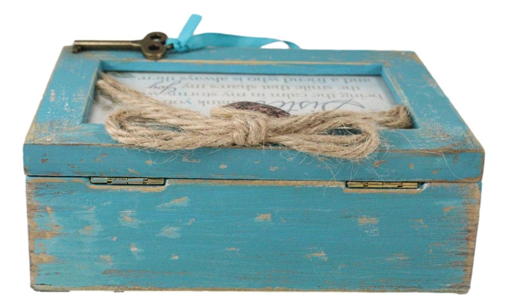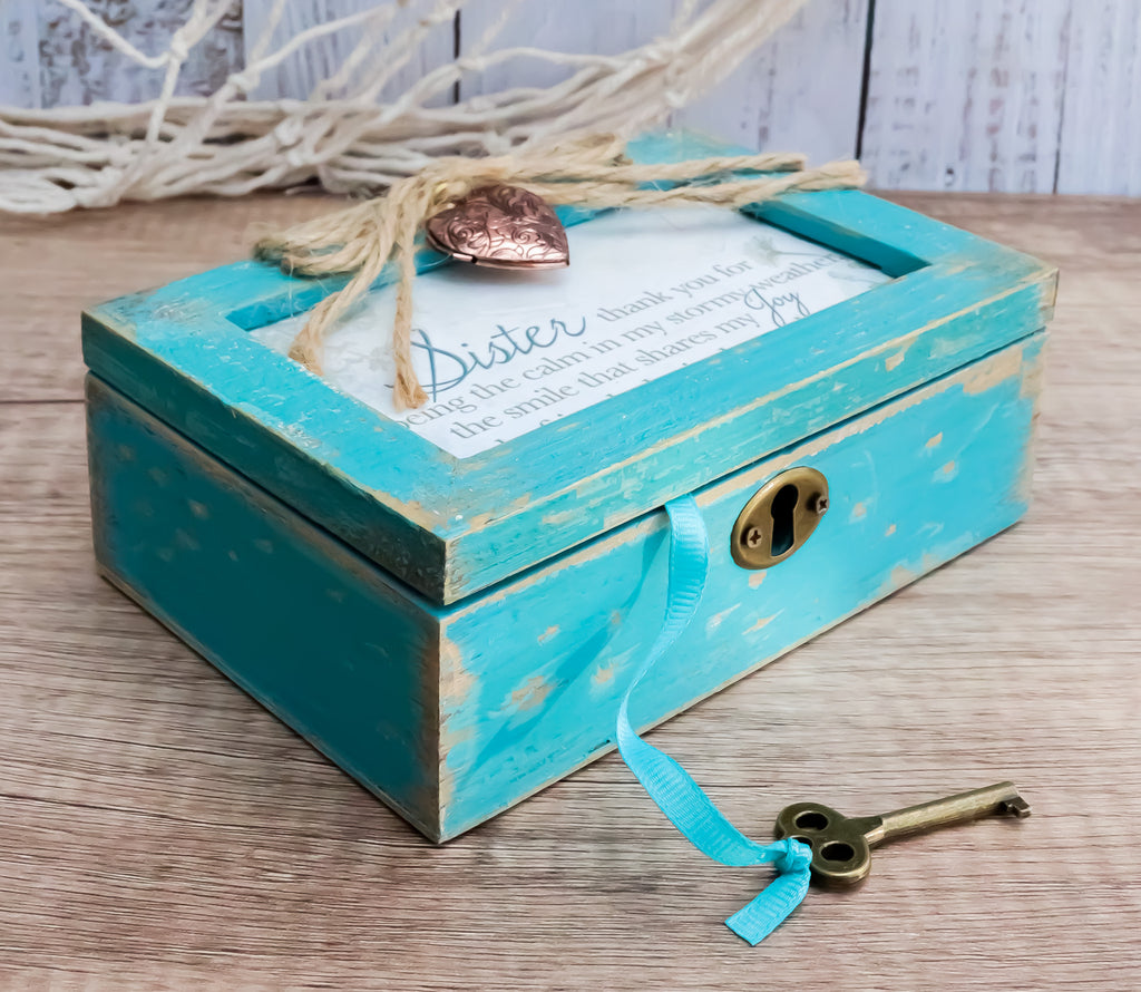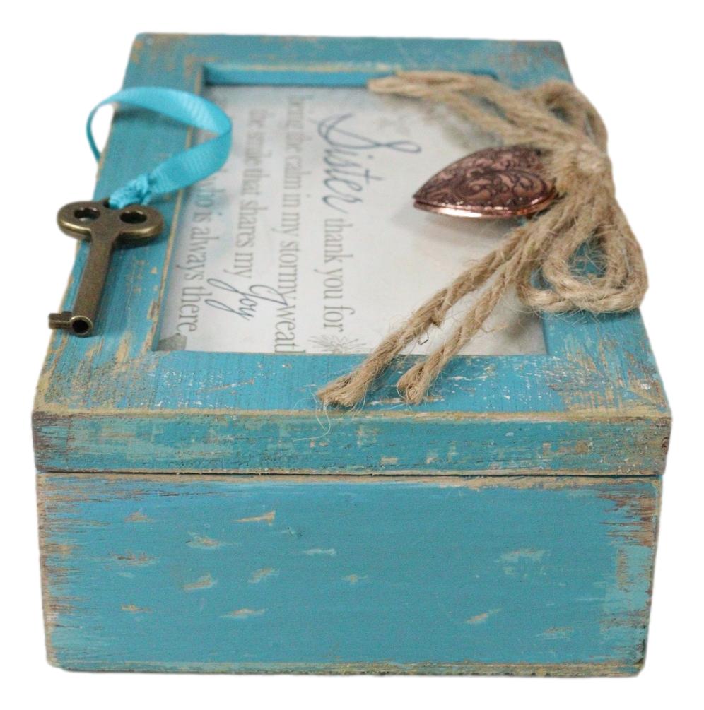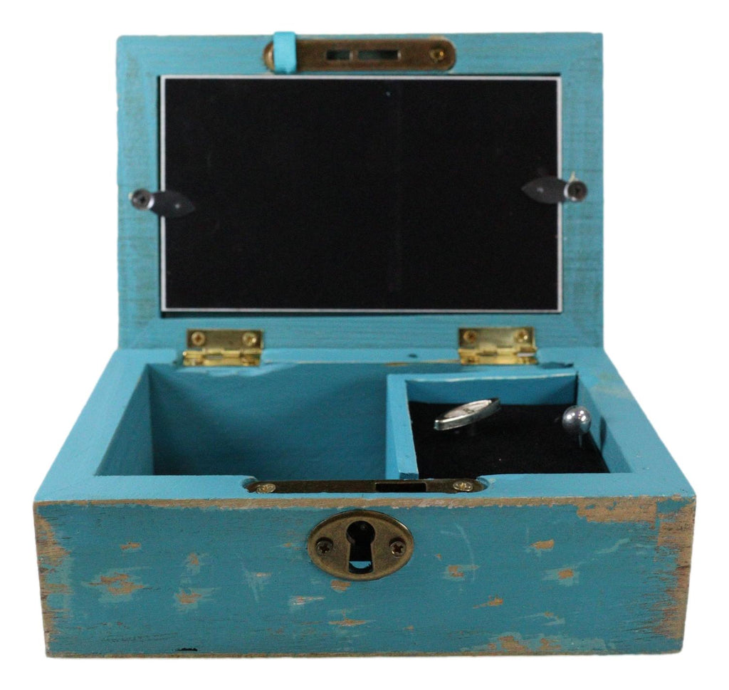 • Distressed Locket Boxes are perfect to keep your treasured possessions and keepsakes. Handcrafted wood with distressed finish, this music box features a locket attached to trendy jute rope and a functional vintage lock with a turn-style key. Insert a personal photo in both the beautiful metal locket and replace artwork with a picture. Wind-up, traditional musical mechanism is contained within the box.