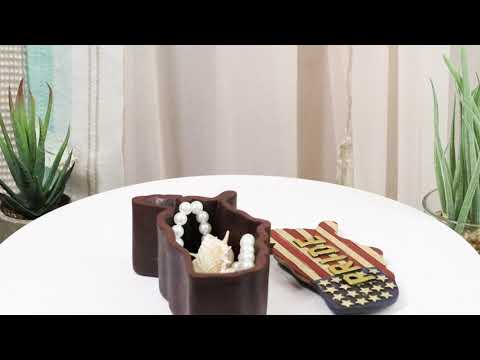 • Add a touch of western country patriotism to your home or office desk with this US Flag Map decorative box sculpture. Painted and finished to look like polished wood, this resin sculpture will hold your secret stash, select stationery, jewelry, keys, coins and more. It is an American Pride, symbolized by the Star Spangled Banner and USA's geographical map cutout shape. A very stylish way to organize and keep your desk looking tidy and clean.