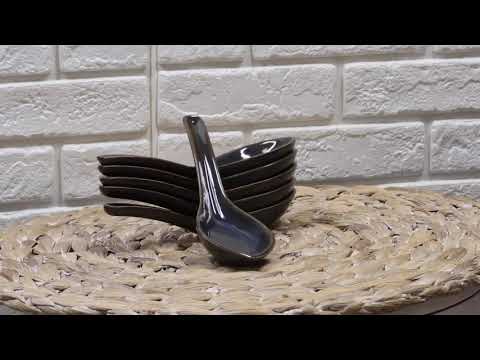 Ebros Made In Japan Modern Sleek Glazed Ceramic Mocha Brown Soup Spoons Set Of 6