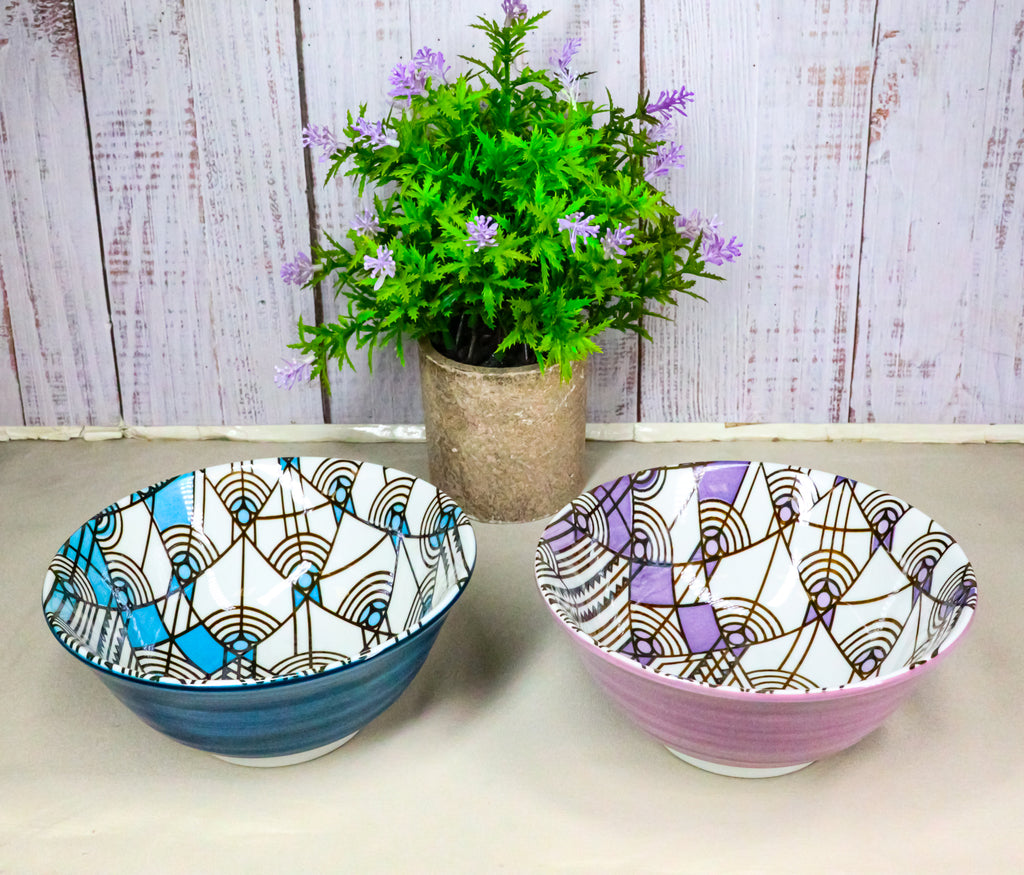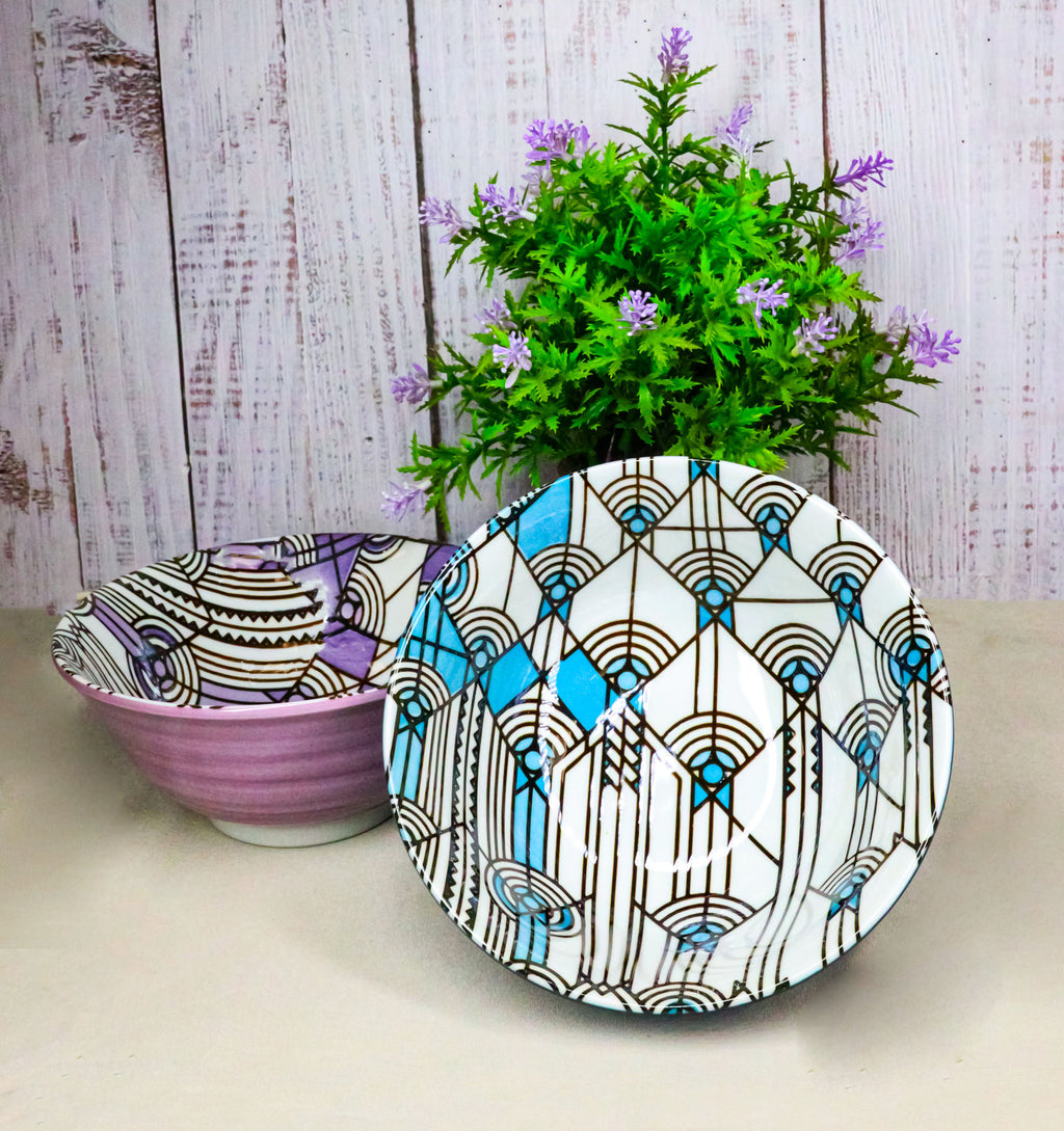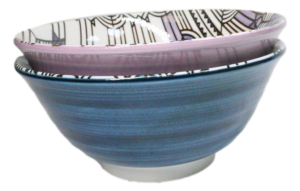 Pack Of 2 Made In Japan FLW April Showers Blue And Purple Porcelain Bowls 18oz