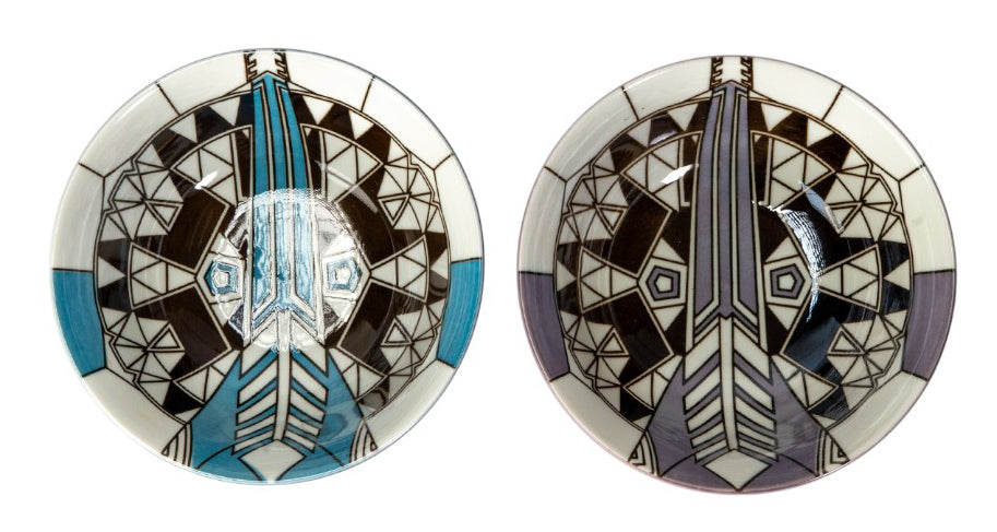 • Each of these beautiful glazed porcelain bowls are made with superior quality in mind. Our traditionally crafted porcelains are made of the highest quality porcelain available and fired at a high temperature to maximize the strength of the porcelain, making them superior to other ceramics in the market. Our porcelains are more resistant to cracks, stains, and scratches. Our porcelain is food safe and contain no lead or cadmium. • Measurements: Bowl diameter 6" and 2.25" tall. Holds approximately 18oz. • This set is made in a state of the art factory in Japan. Dishwasher and Microwave Safe • Elevate your table with the timeless artistry of the FLW Imperial Hotel Peacock Rug Bowls. Inspired by Frank Lloyd Wright's iconic peacock motif from the historic Imperial Hotel, these beautifully designed bowls showcase rich blue and purple tones with striking geometric patterns. Perfectly sized for soups, salads, or cereals, they blend functional everyday use with museum-inspired style. • This listing is for a pack of 2 bowls in a white FLW gift box.