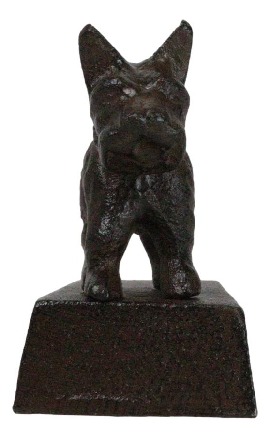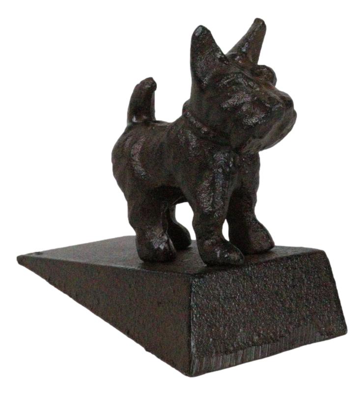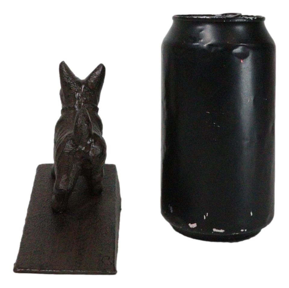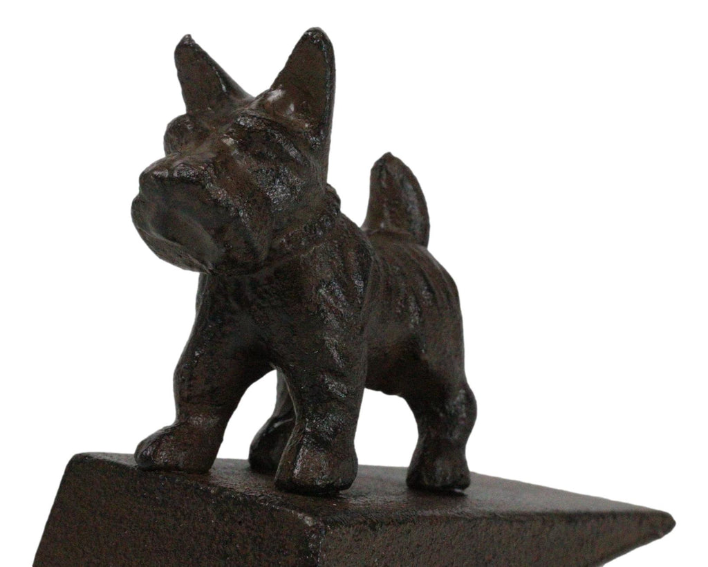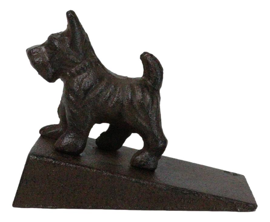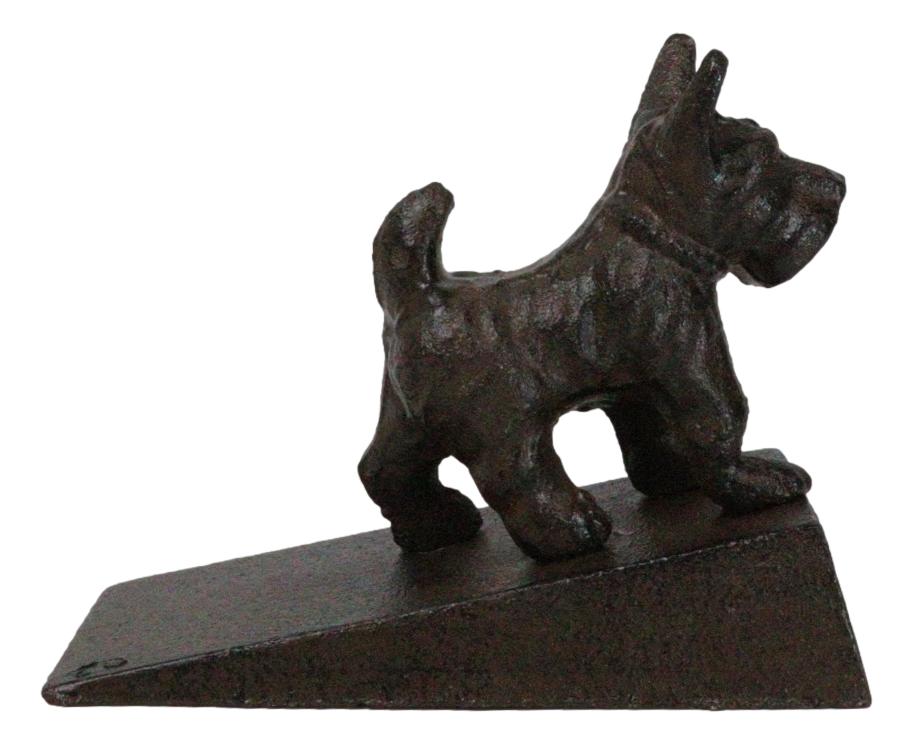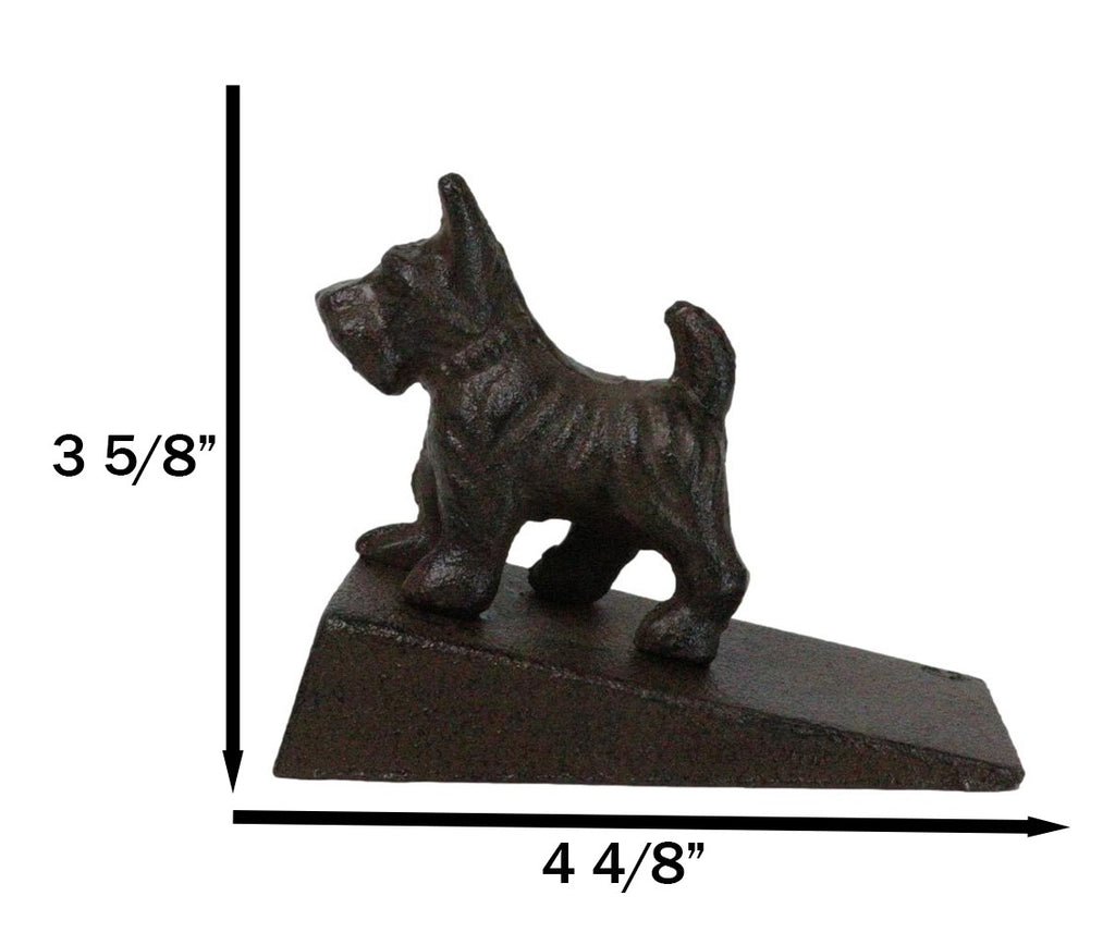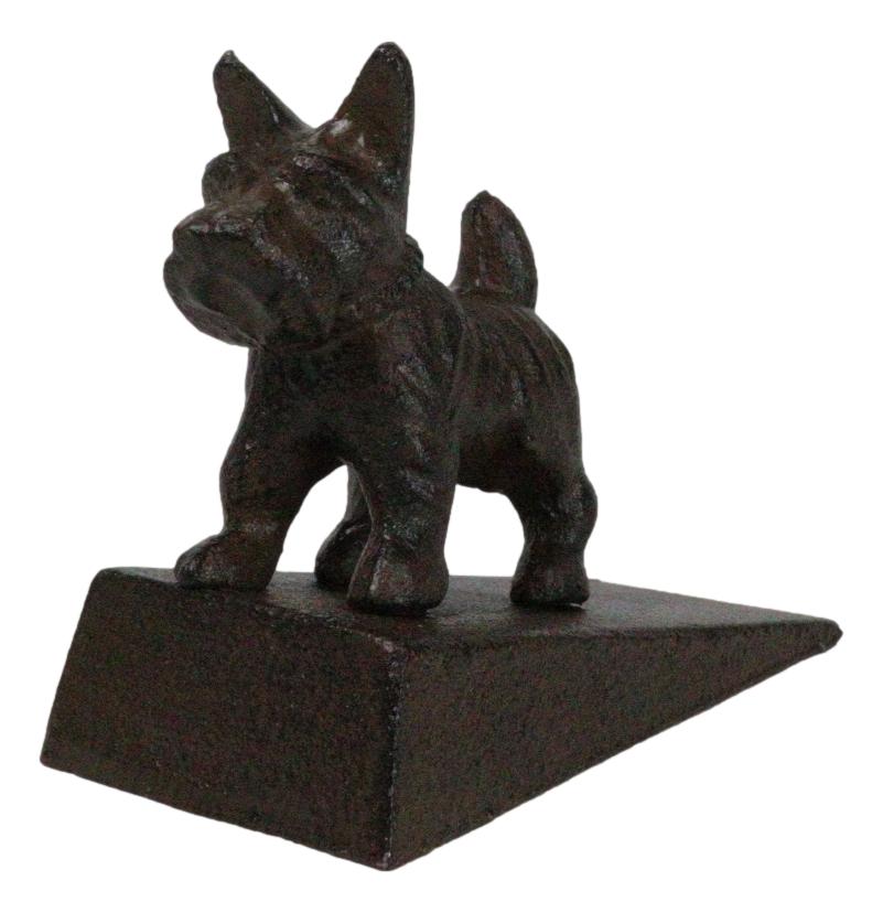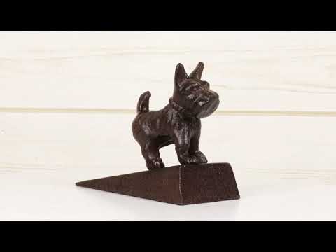 This Dog Door Wedge measures 3.5" Tall, 4.5" Wide and 2.25" deep approximately. It weighs about 9 ounces. This Dog Door Wedge is made of solid heirloom cast iron, hand painted and polished in rusted bronze finish. Add a touch of charm to your home with our Rustic Cast Iron Dog Door Stop Wedge! This adorable canine design not only keeps your doors securely open but also serves as a delightful decorative piece. Crafted from durable cast iron, it's built to last while showcasing a playful character that dog lovers will adore. Perfect for any room in your home, this door stop combines functionality with whimsy, making it a great addition to your decor or a thoughtful gift for fellow dog enthusiasts.