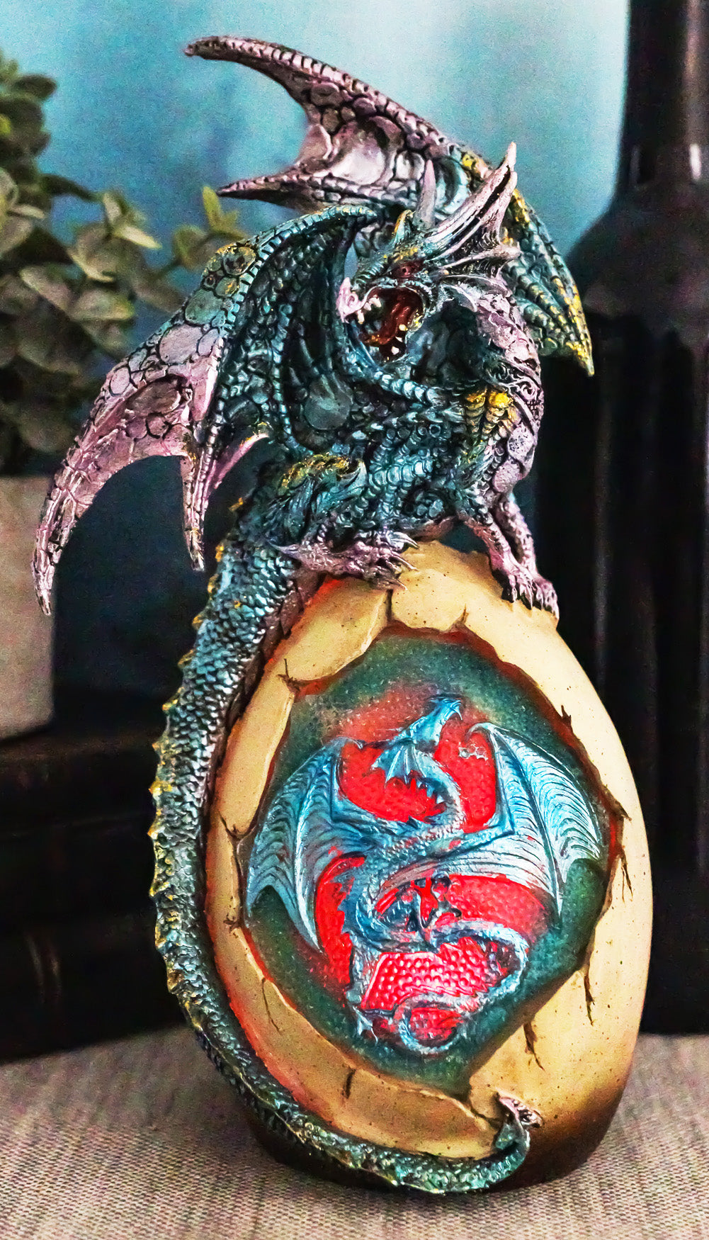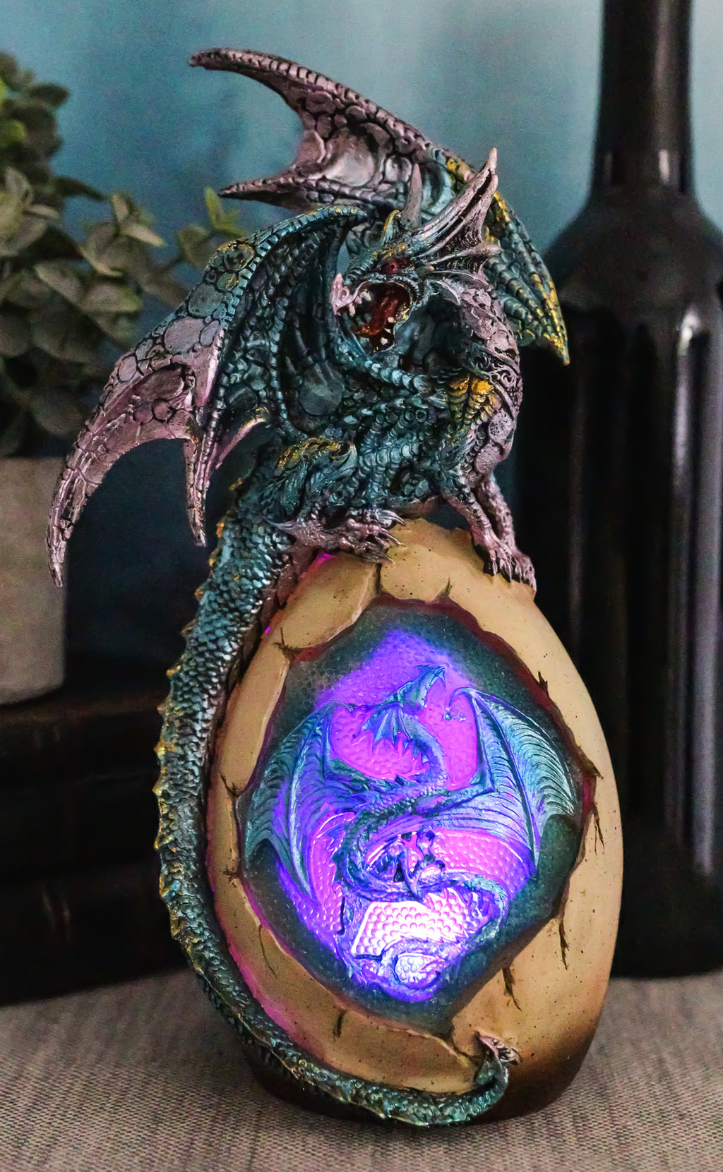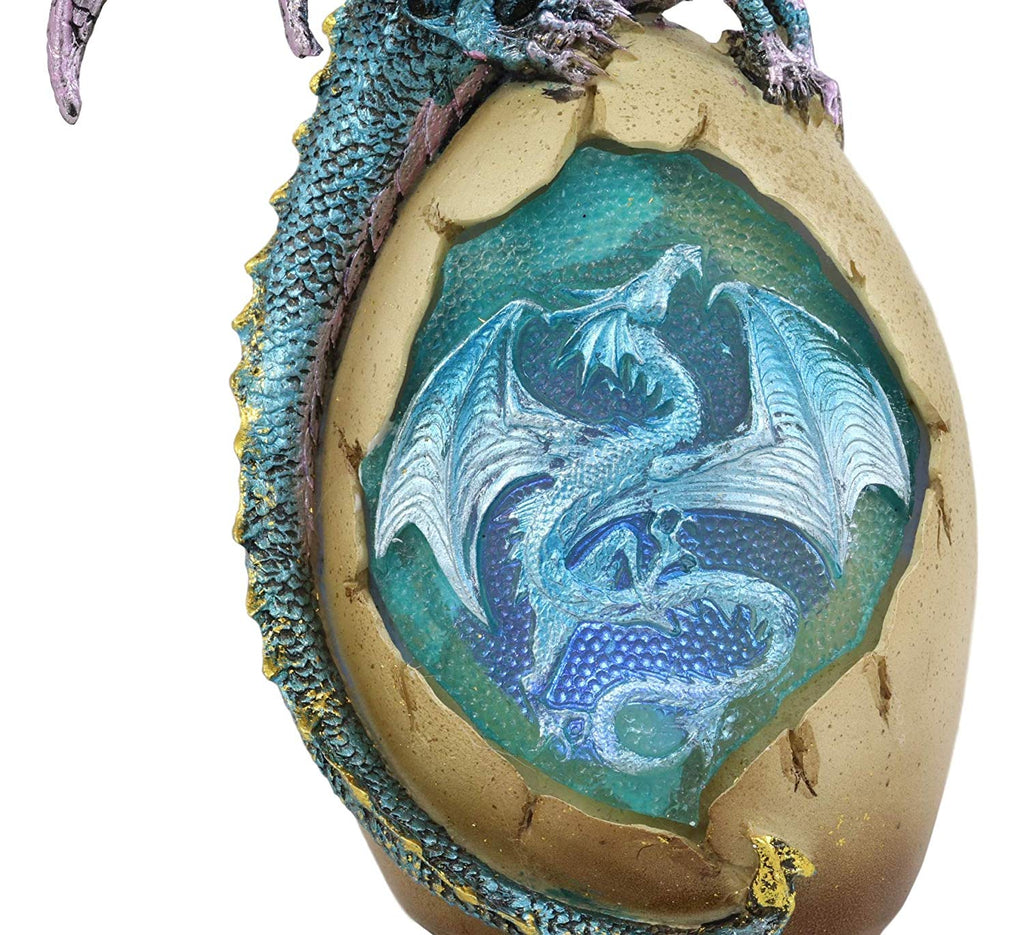 • This Aurora Borealis Dragon On LED Egg Hatchling Statue is made of high quality designer resin, individually handpainted and polished. Because each piece is partially hand crafted, color tone may vary from pictures. LED light runs on Battery.