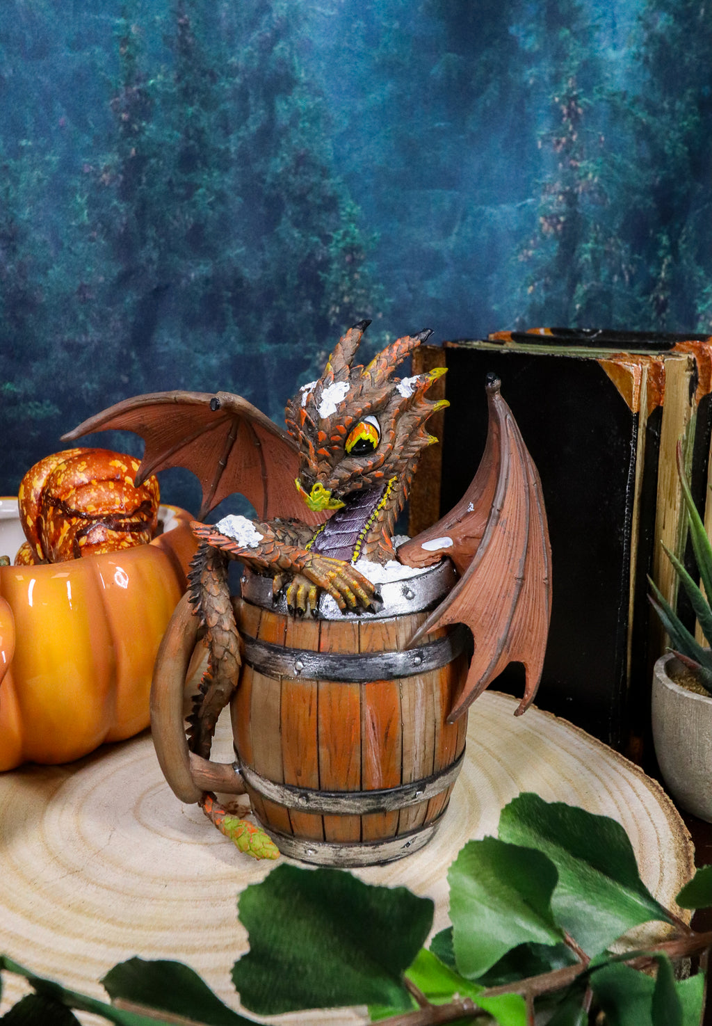 Ebros German Fest Dark Beer Dragon in Aged Barrel Fantasy Drunk Dragons Figurine 6"H