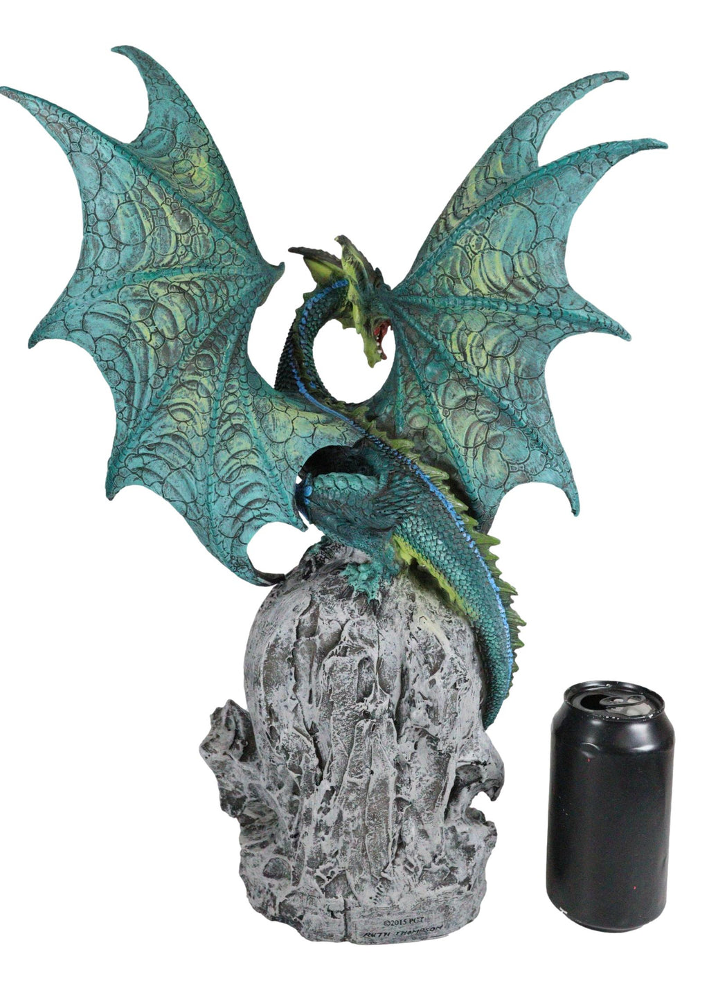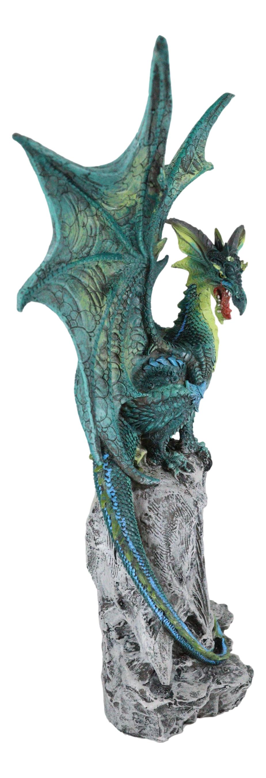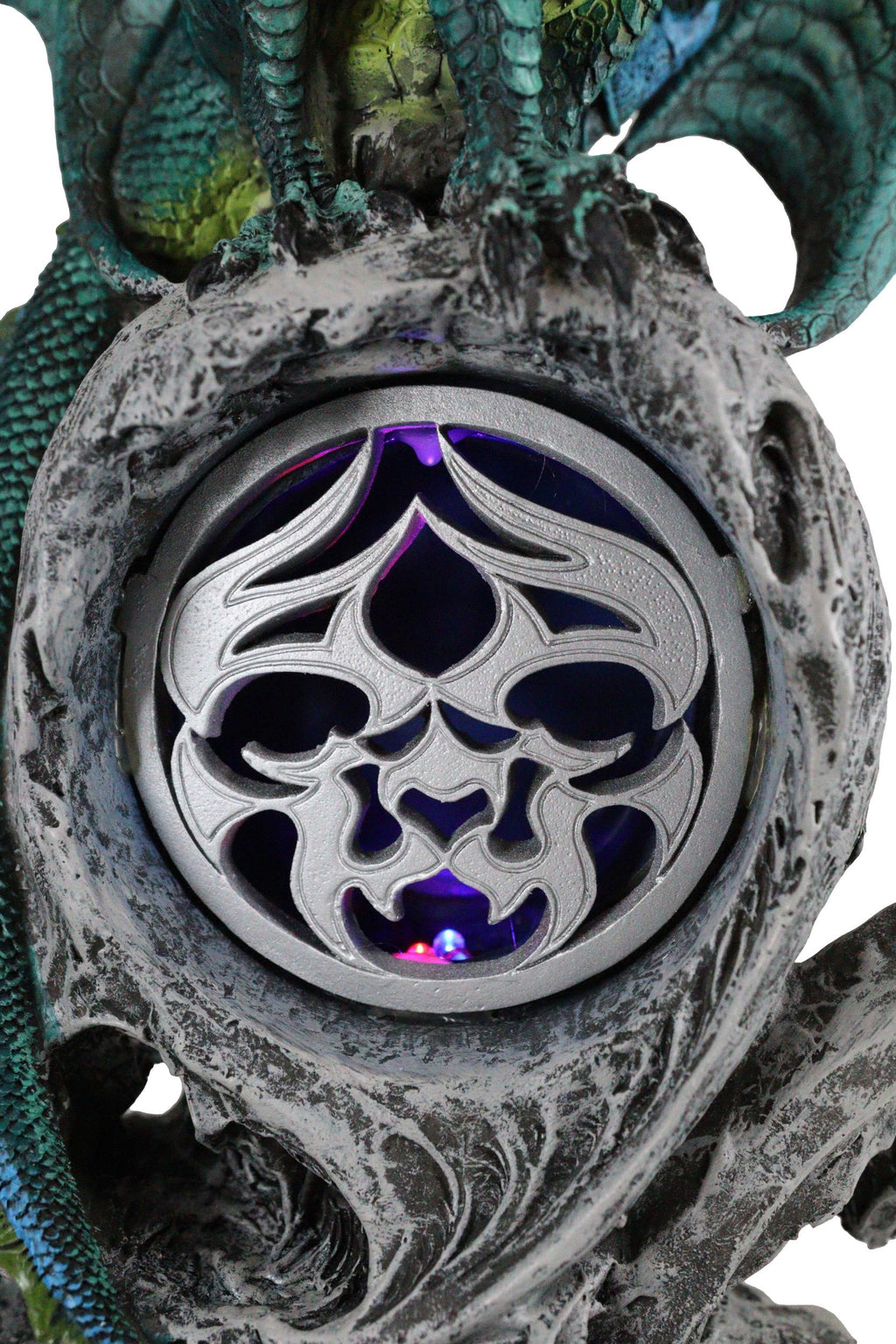 • This item depicts a Mighty Jade dragon perched on cave rock guarding the bright fire emblem amulet which is illuminated from within via LED light when powered by batteries.
