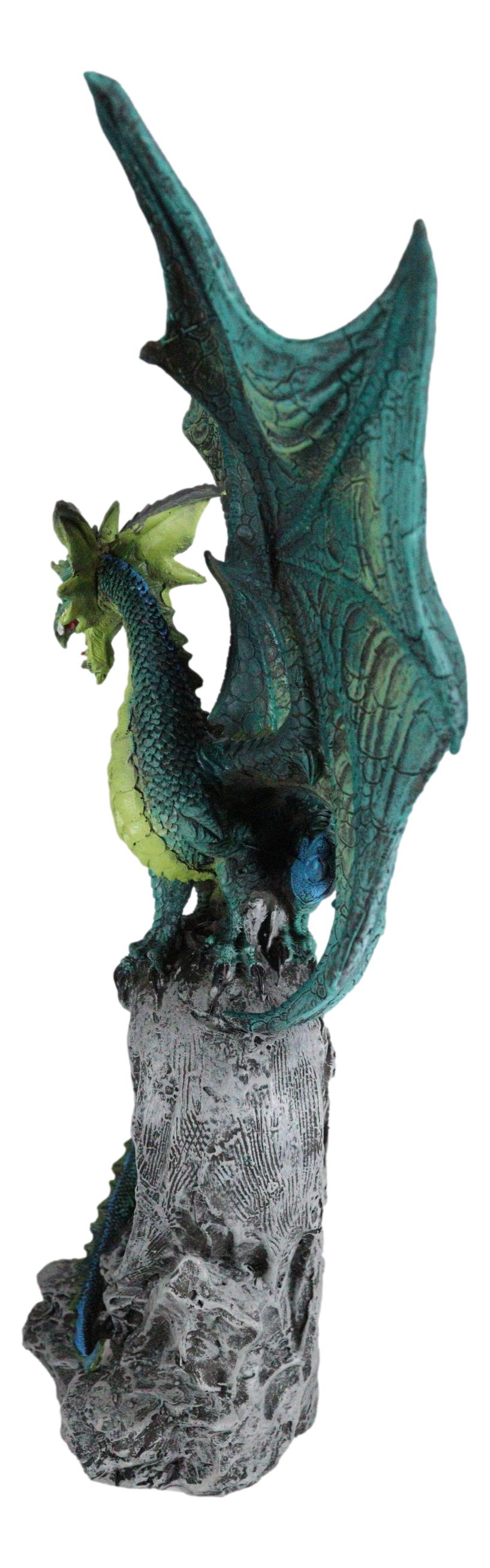 Ebros Large Jade Pagoda Asian Dragon Guarding LED Light Fire Emblem Amulet Statue
