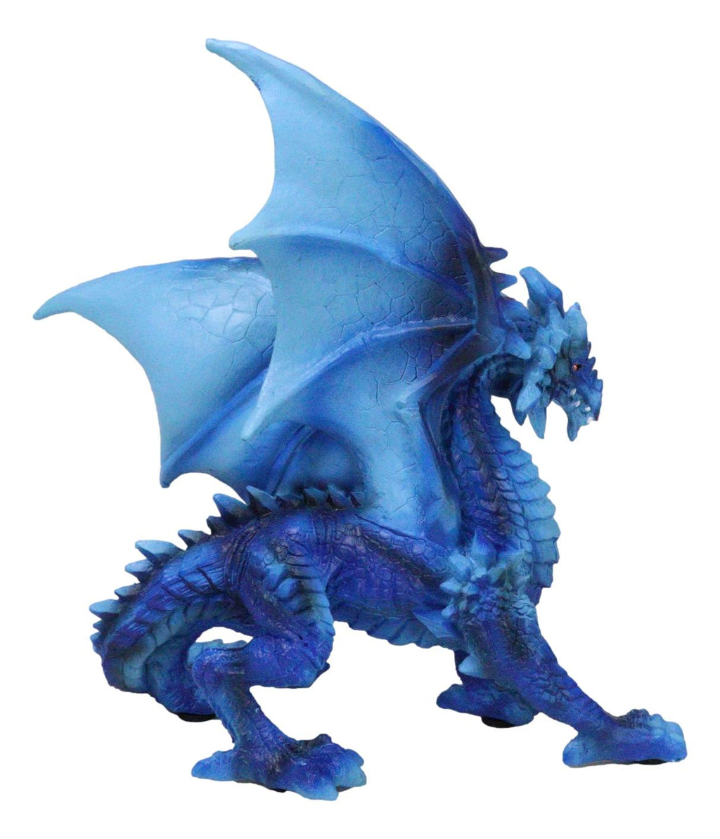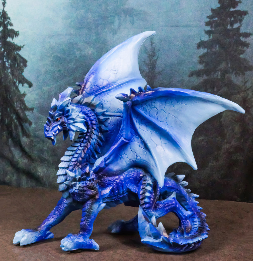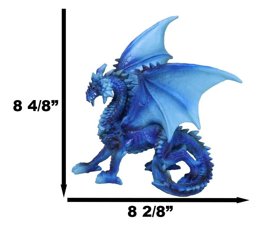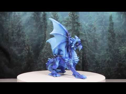 • This Blue Water Elemental Dragon figurine measures 8.5" tall, 8.25" wide and 3.75" deep approximately. It weighs about 1.25 pounds. • This Blue Water Elemental Dragon figurine is made of polyresin, hand painted and polished individually. Color tone may vary slightly from pictures. • This captivating piece portrays a dragon poised in a stoic stance, embodying the essence of water and ice. Its shimmering blue scales are reminiscent of deep ocean waves, while icy accents add a touch of frozen beauty, capturing the balance between fluidity and rigidity. The intricate design brings this elemental dragon to life, with detailed scales, sharp claws, and a majestic tail.