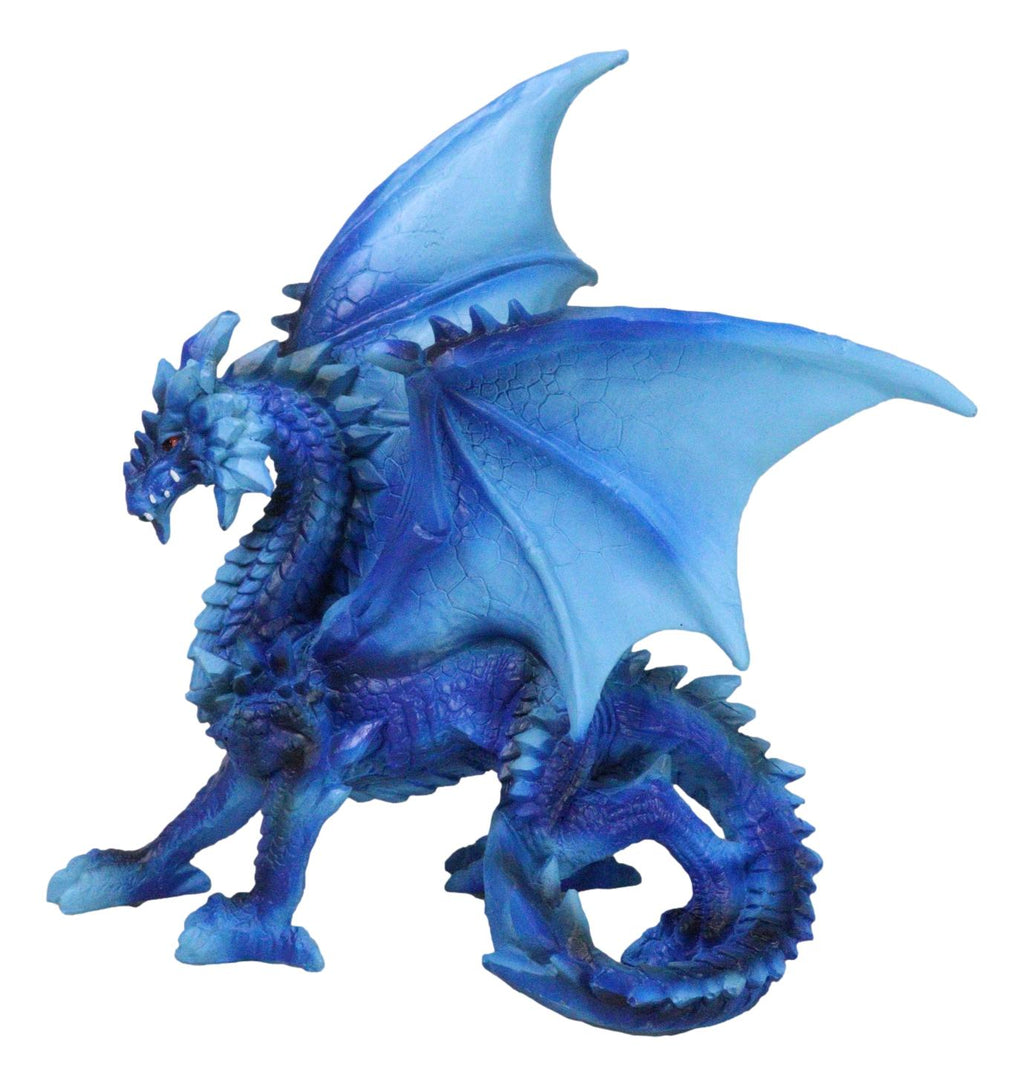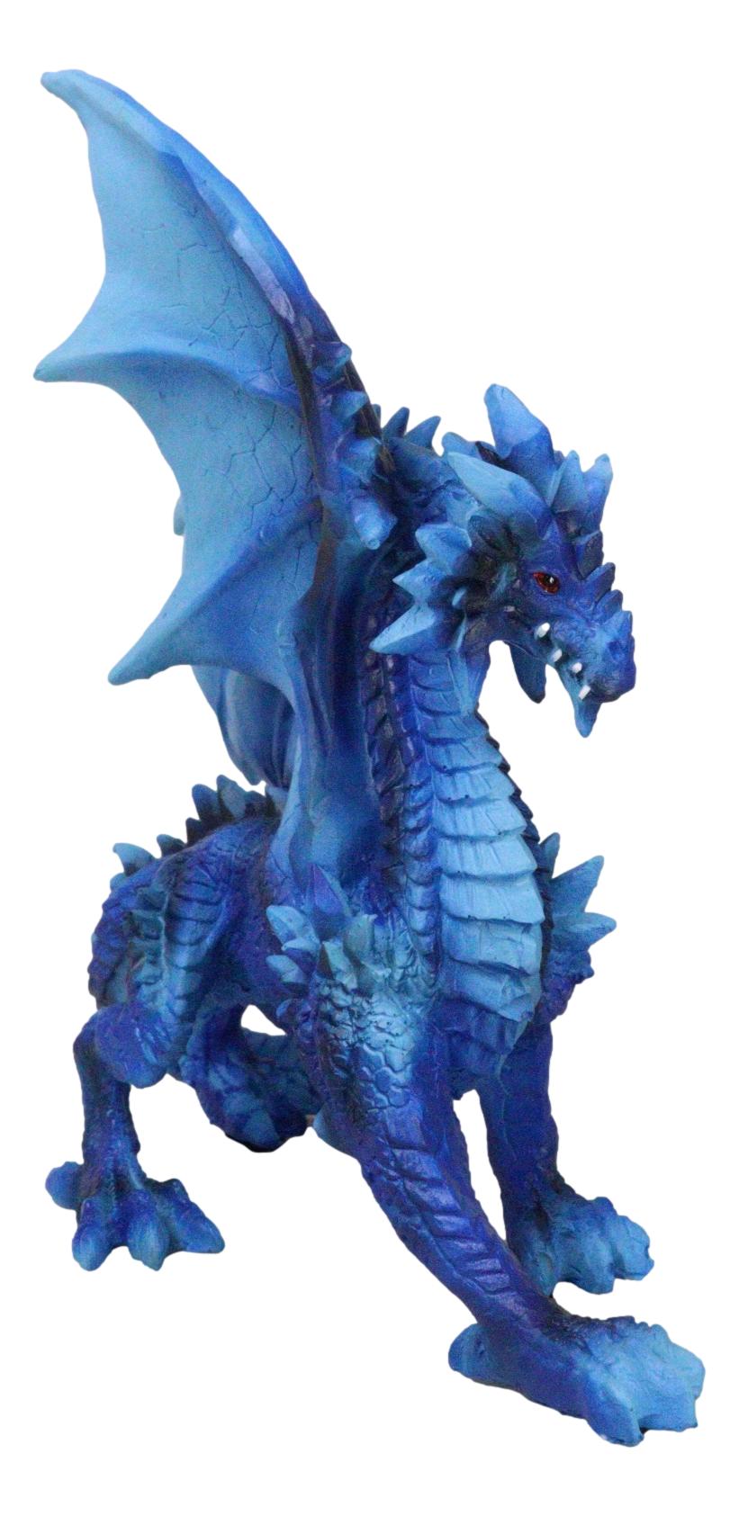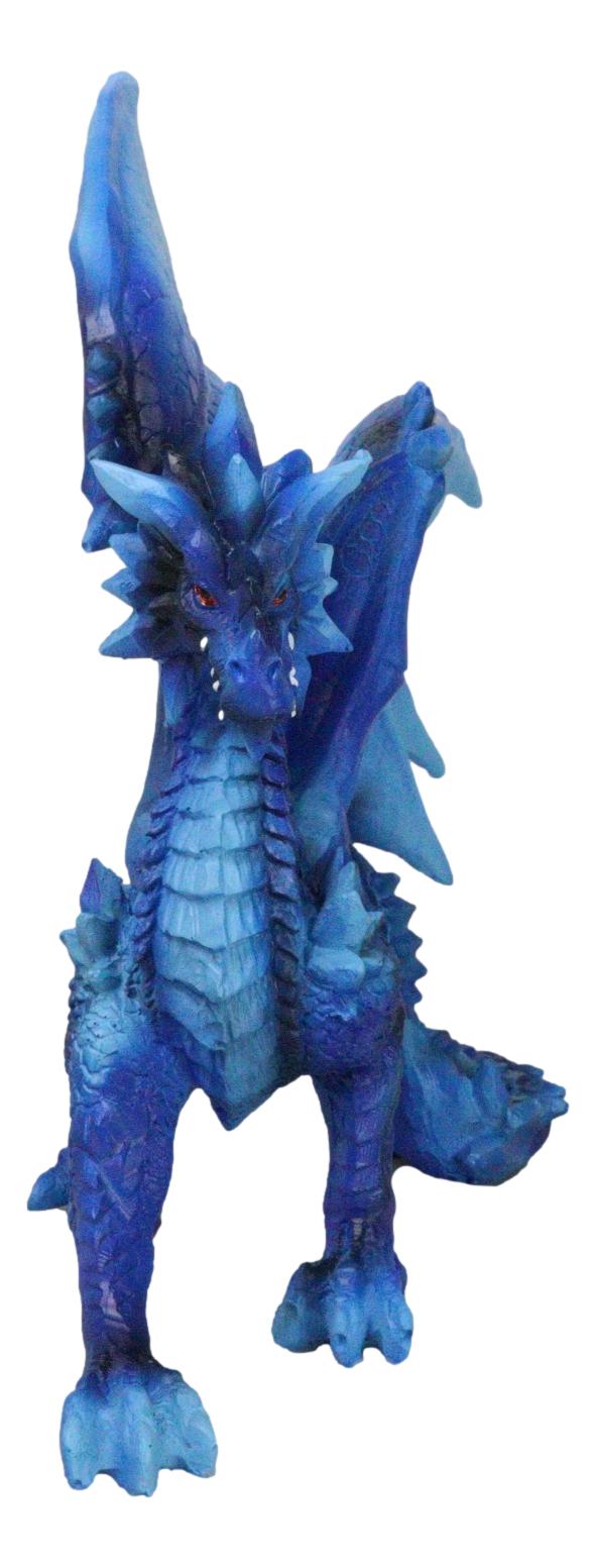 • This Blue Water Elemental Dragon figurine measures 8.5" tall, 8.25" wide and 3.75" deep approximately. It weighs about 1.25 pounds. • This Blue Water Elemental Dragon figurine is made of polyresin, hand painted and polished individually. Color tone may vary slightly from pictures. • This captivating piece portrays a dragon poised in a stoic stance, embodying the essence of water and ice. Its shimmering blue scales are reminiscent of deep ocean waves, while icy accents add a touch of frozen beauty, capturing the balance between fluidity and rigidity. The intricate design brings this elemental dragon to life, with detailed scales, sharp claws, and a majestic tail.