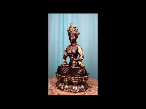 • In this iconic sculpture of the Goddess of Mercy, meditating in vast serenity. She sits open a golden floral lotus throne.