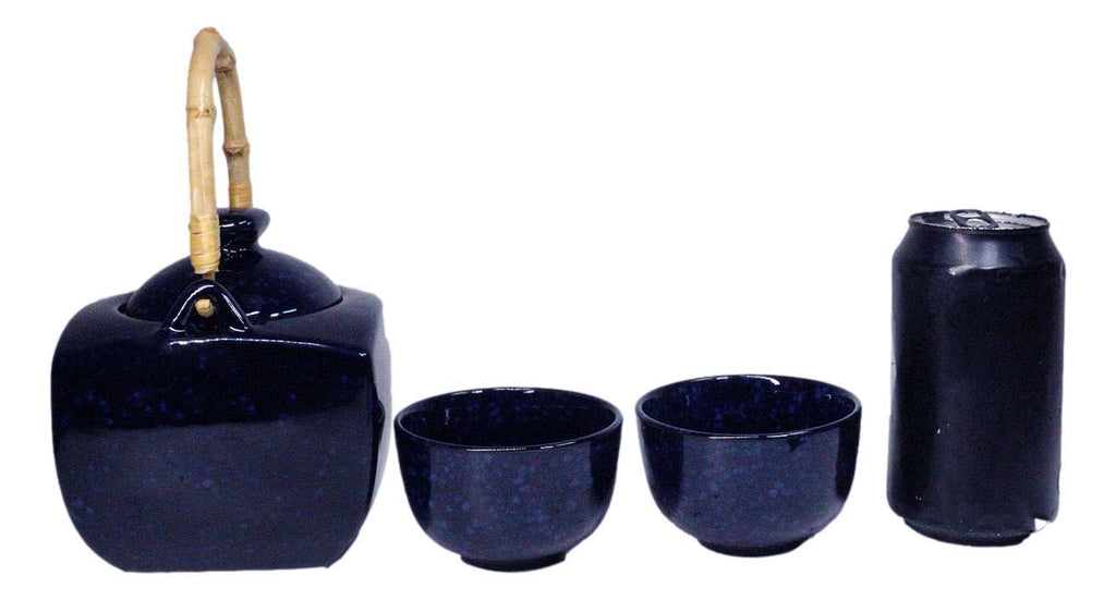 Speckled Navy Blue Zen Fusion Reactive Glaze 32oz Teapot With 2 Tea Cups Set