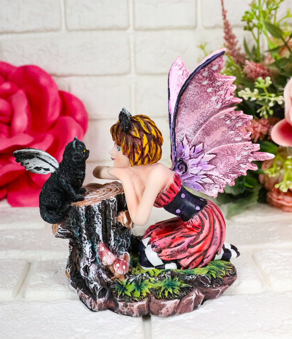Tribal Autumn Girl Fairy with Red Hair Talking with Winged Black Cat Figurine