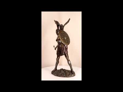 • In this figurine, she is seen wielding a spear one one arm and a shield on the other. A wise owl of vision perches on her shoulder giving her longer and accurate insight of the battle array.
