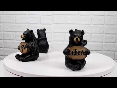 • Decorate your desks, shelves, car dashboards or what have you with these inspiration bear figurines! Each of these whimsical black bears holds a faux wood sign that says Believe, Love, Hope and Faith respectively. Use them as joyful reminders of your faith every day. They make perfect addition to your Christian, spiritual or religious décor. They make great teddy bears gift idea for Valentine's Day or Easter, they are ready to brighten up any home!