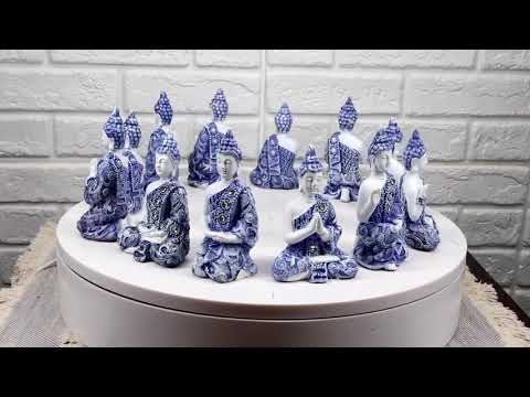 • These Terracotta Blue And White 12 Meditating Buddha Amitabha Miniature figurines with the incense holder display stand set is made of designer composite resin, hand painted and polished individually. Color tone may vary from pictures.