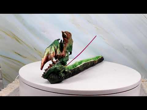 • This is a beautiful semi shiny green dragon incense holder that features a guardian green dragon over a quarry of crystal emeralds. Burn your incense sticks with great style and get rid of those mundane old fashioned incense holders.