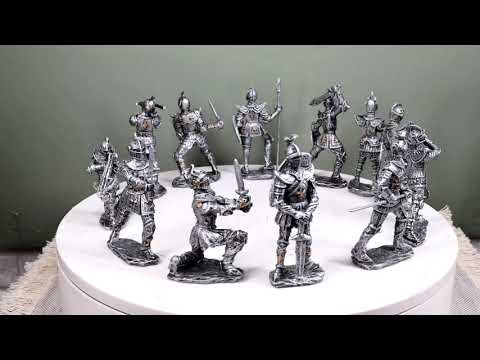 Ebros Set of 12 Medieval Knights w/ Swords Crossbow Halberds & Shield Figurines