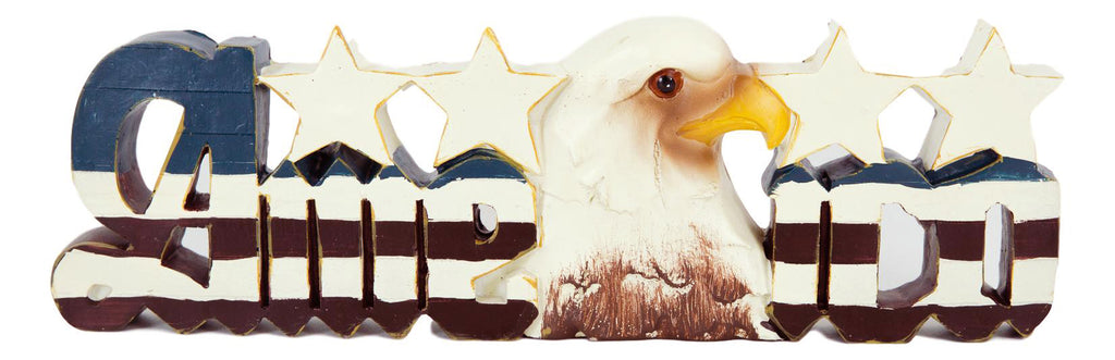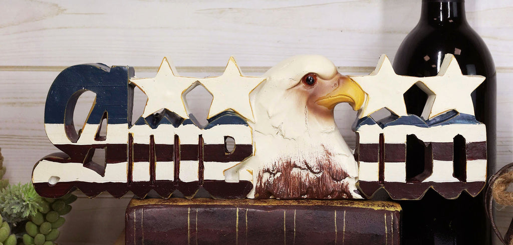 America Patriotic Bald Eagle Stars Word Art Sign USA Flag Desktop Plaque Decor