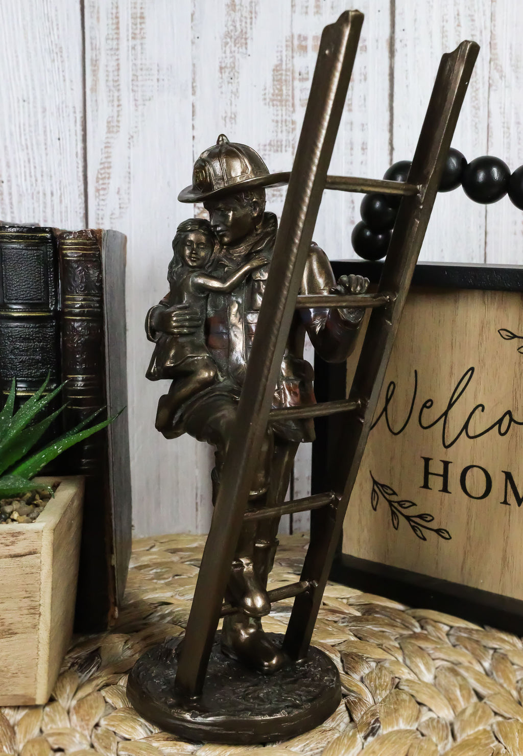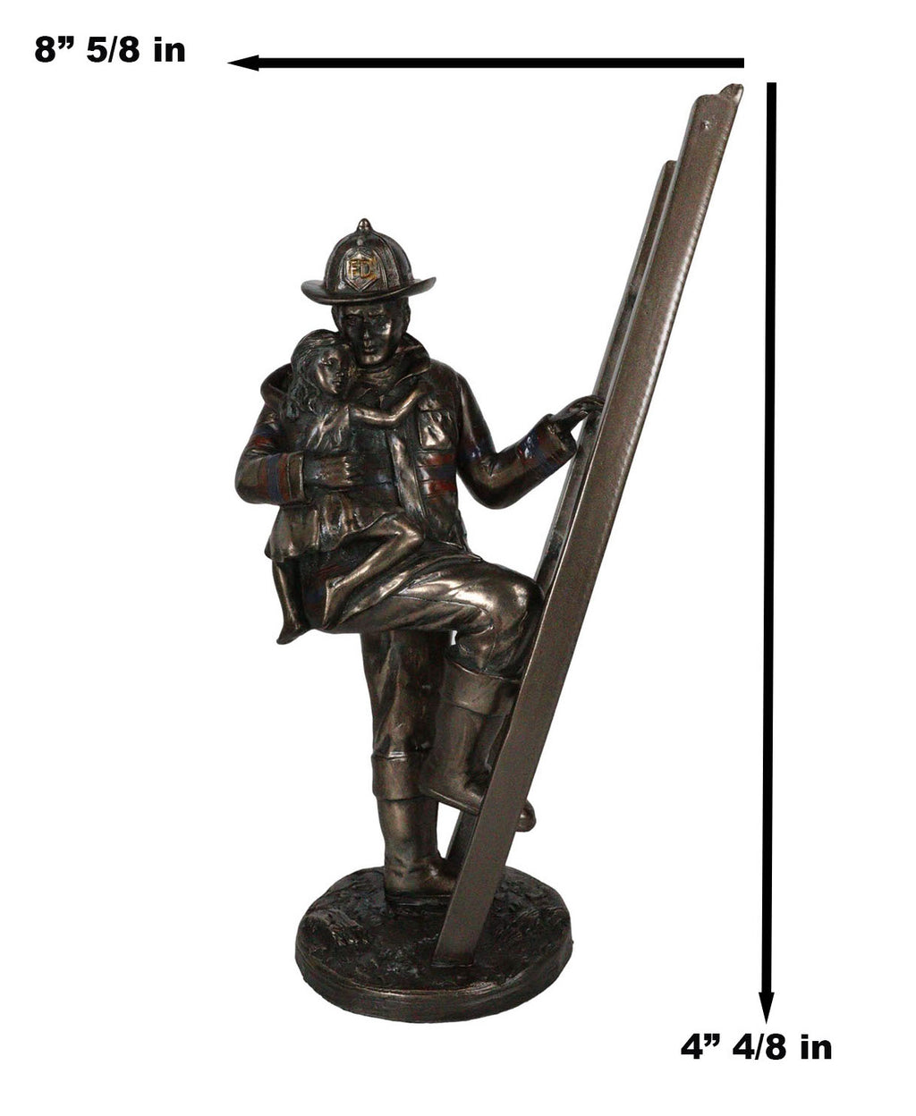Ebros Brave Fireman Fire Fighter Hero Saving Child Descending From Ladder Figurine
