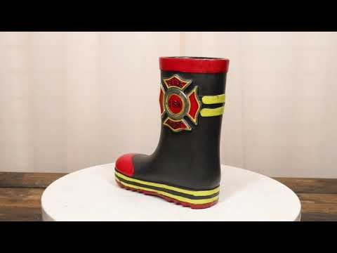 Fire Fighters Fireman Red Black and Yellow Boot Stationery Holder Flower Vase