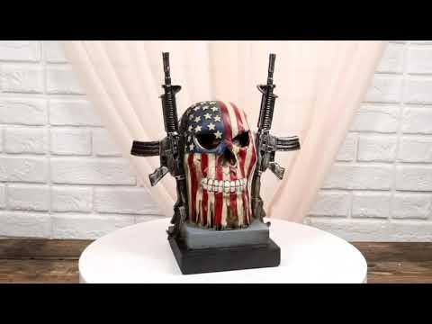 • This Patriotic American Flag Skull With Rifles is made of high quality polyresin. It is meticulously hand painted and polished. Color tone may vary from pictures.