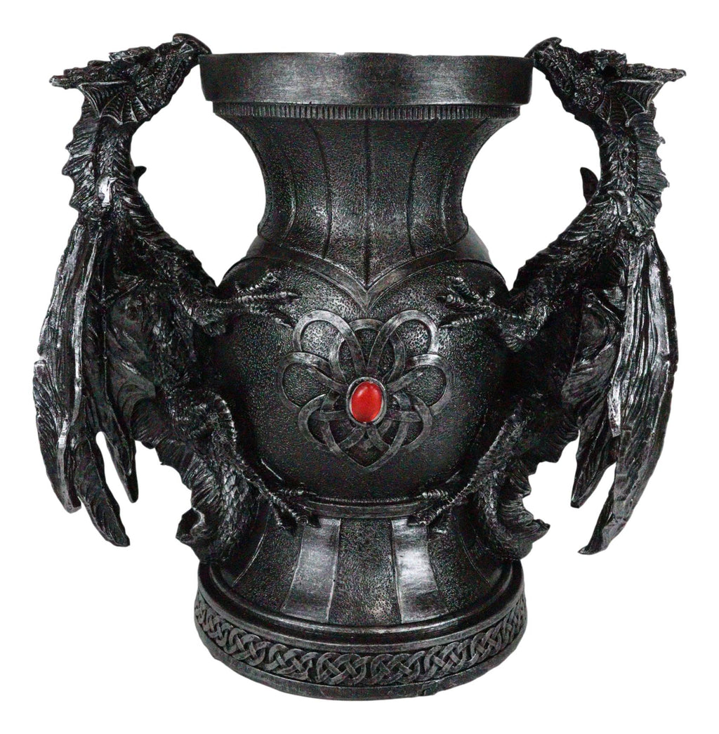 Ebros Dual Climbing Dragon Wyverns Chalice Shaped Decorative Flower Vase 10"