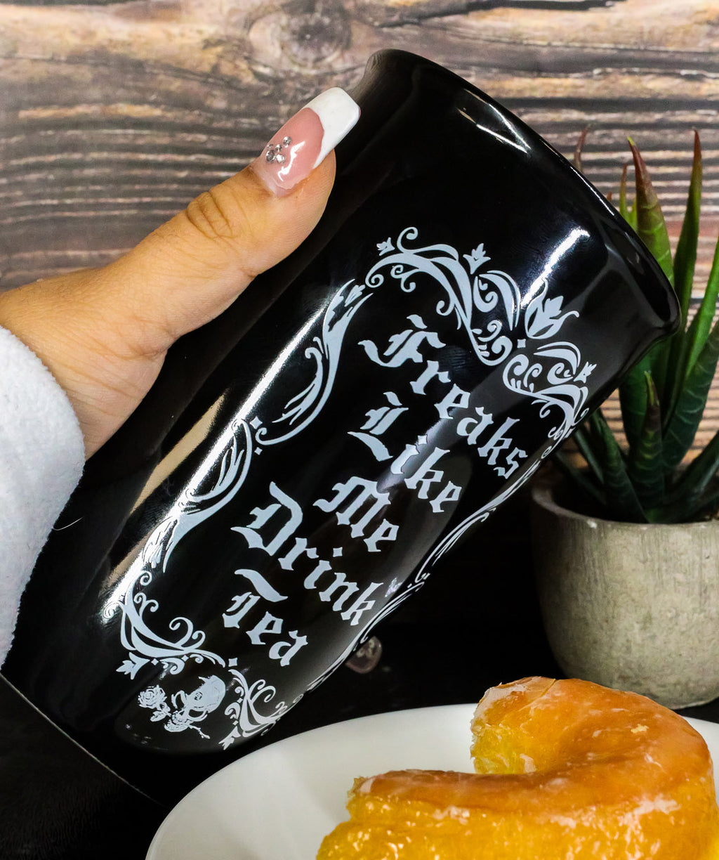Ebros Gothic Alchemy Freaks Like Me Drink Tea Ceramic Travel Coffee Mug Cup 12oz