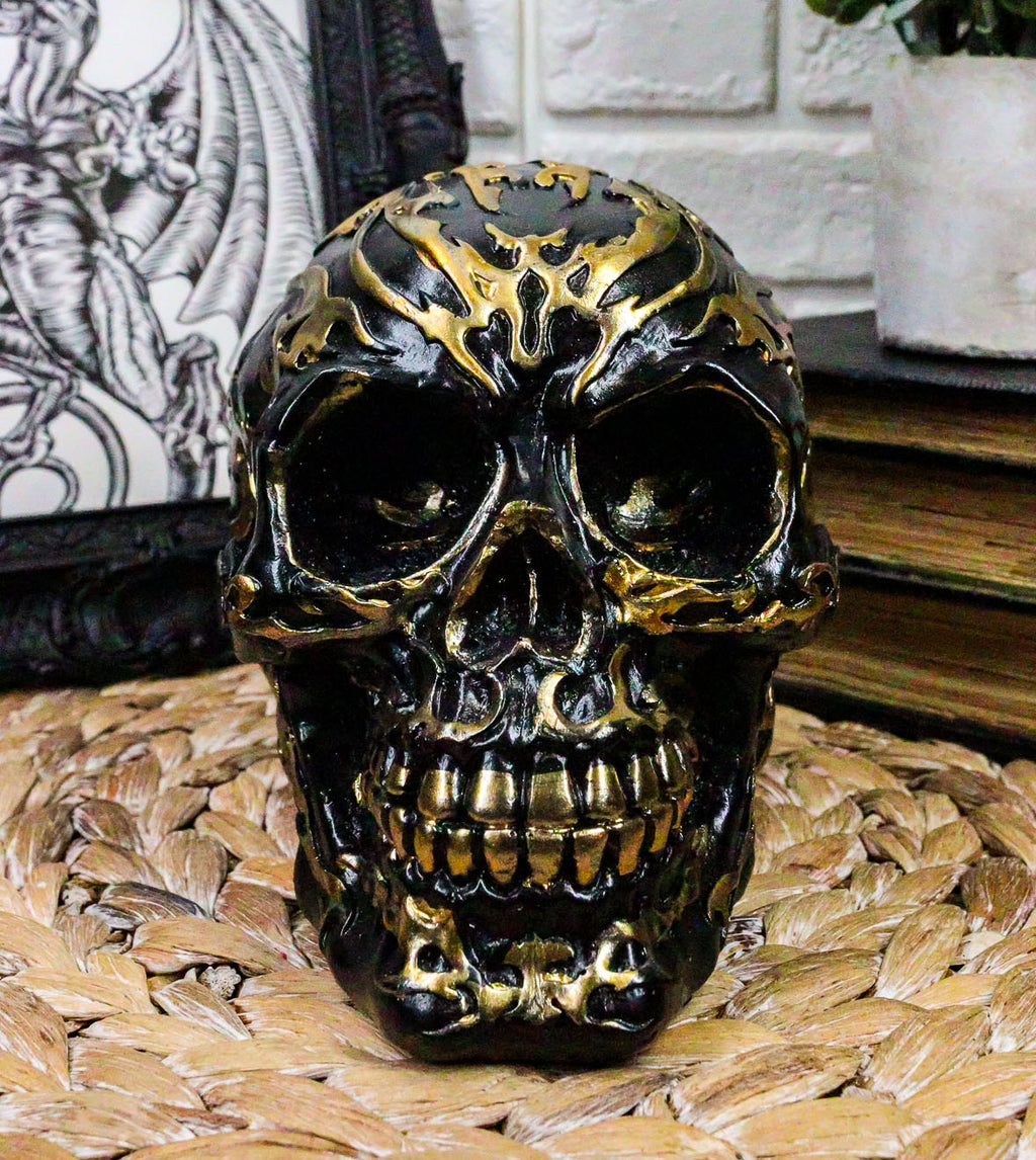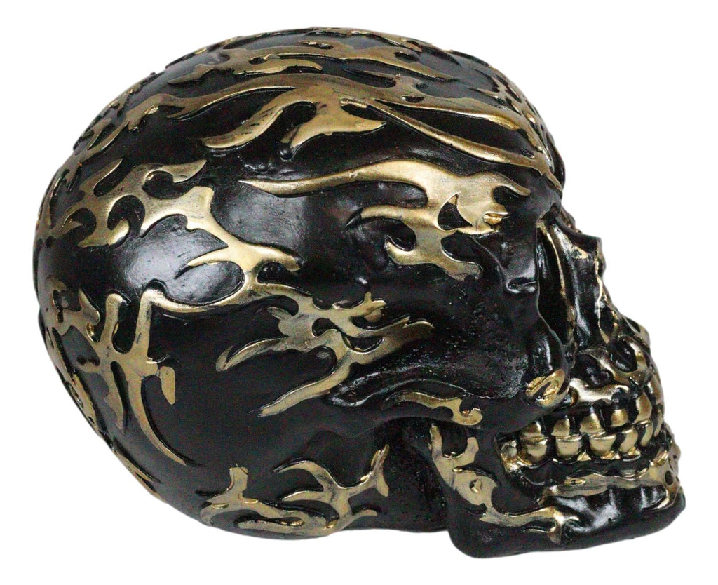 Ebros Black and Gold Tribal Skull Figurine 6.5" Long Collectible Horror Skull Head