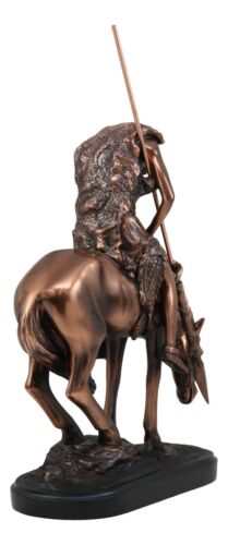 • This Native Indigenous Indian Sculpture featuring the 'End Of The Trail' is made of the highest quality resin, undergoing the process of bronze electroplating giving it a uniform shine on the inside as well as the surface of the figurine. This process makes the figurine resemble the look of actual bronze but with much lesser weight.