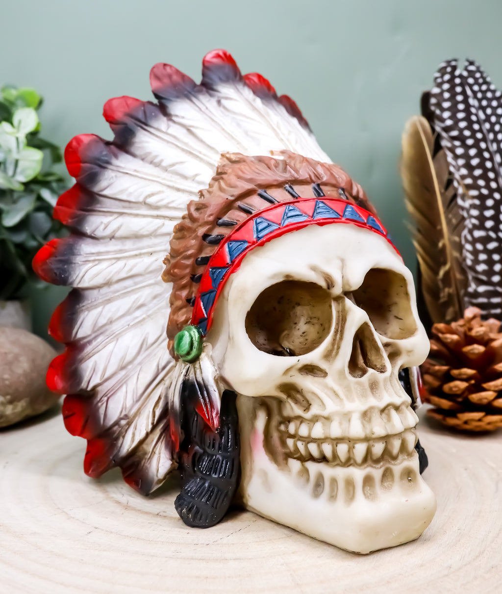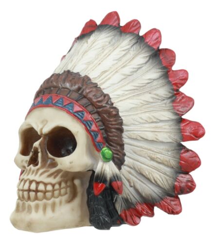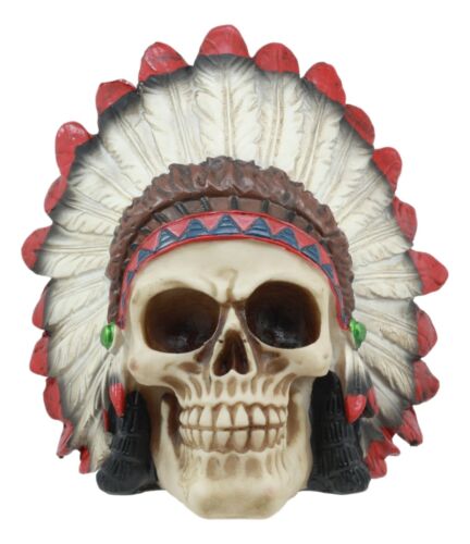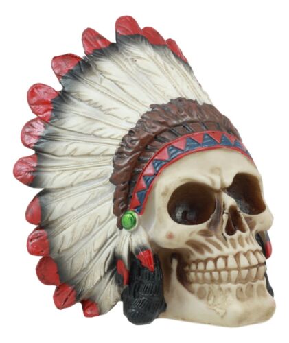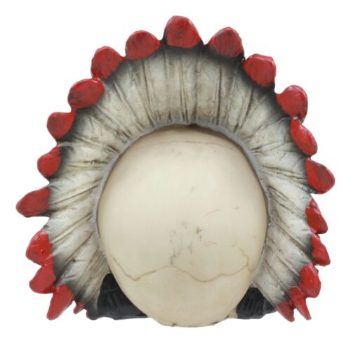 Indian Chieftain Skull Statue 5.75"L Mohawk Warrior Skull With Roach Headdress