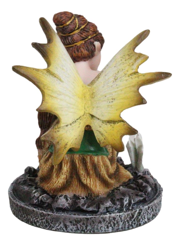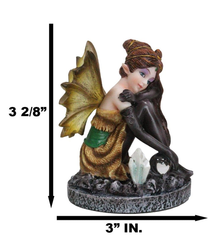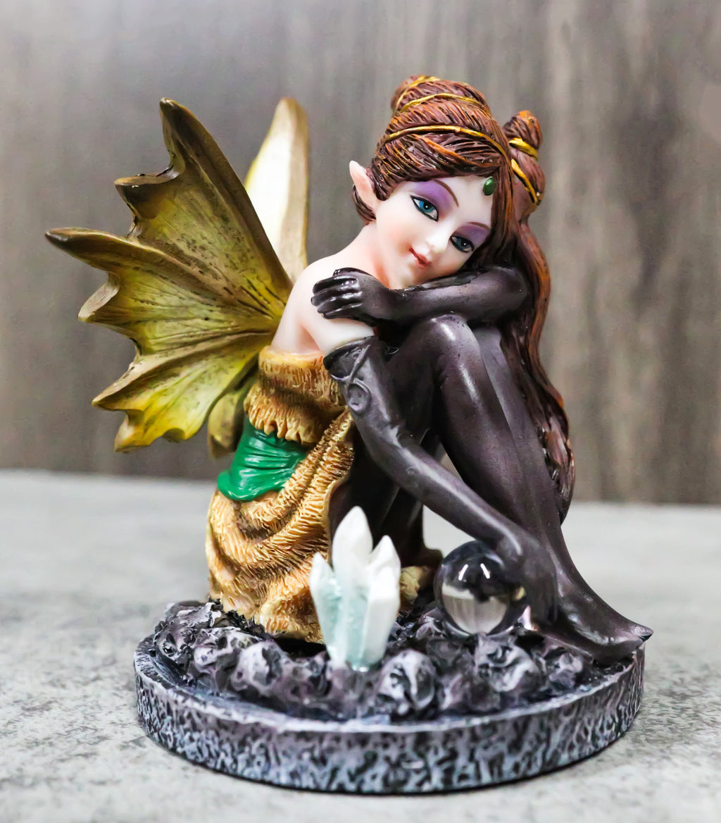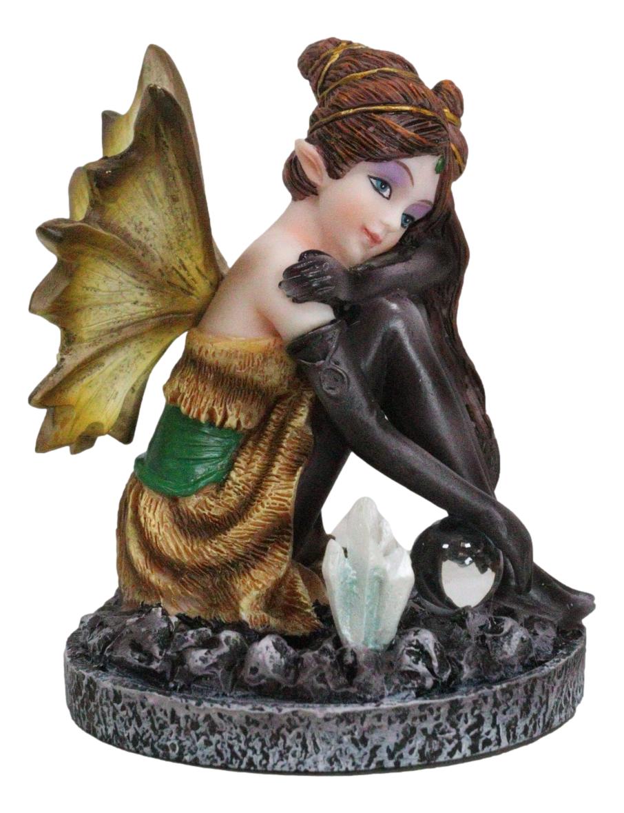 • Immerse yourself in the enchanting spirit of autumn with our Kneeling Brown Tribal Dress Autumn Fall Elf Fairy Figurine, a captivating addition to your collection that embodies the essence of the season. This intricately crafted figurine features a charming elf fairy adorned in a rich brown tribal dress, delicately guarding a crystal ball. Resting on a crystalline rocky floor, the details of this figurine evoke the warmth and vibrancy of fall.